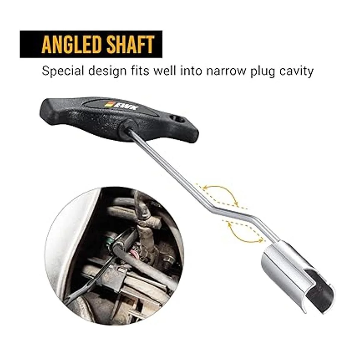 Ahorro de tiempo: el eje en ángulo encaja bien en la cavidad estrecha del enchufe sin necesidad de desmontar el colector, llega a los tapones del cilindro 2 y 3 sin problemas.