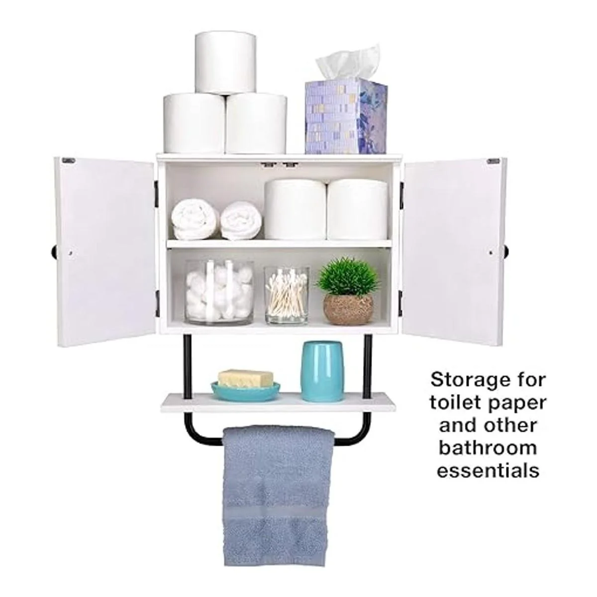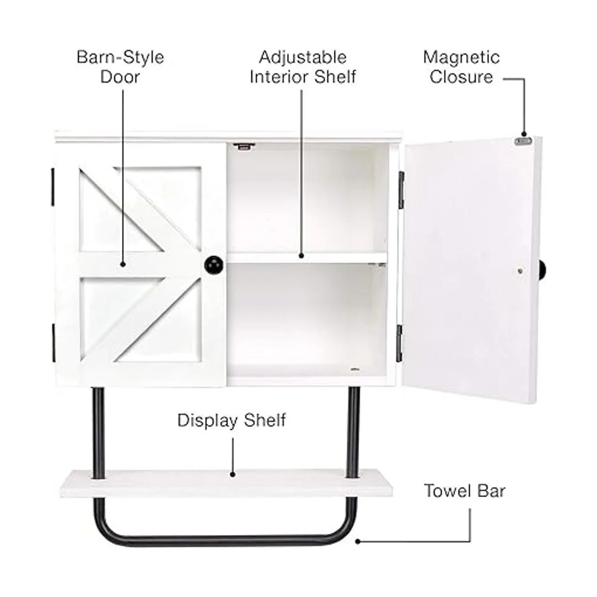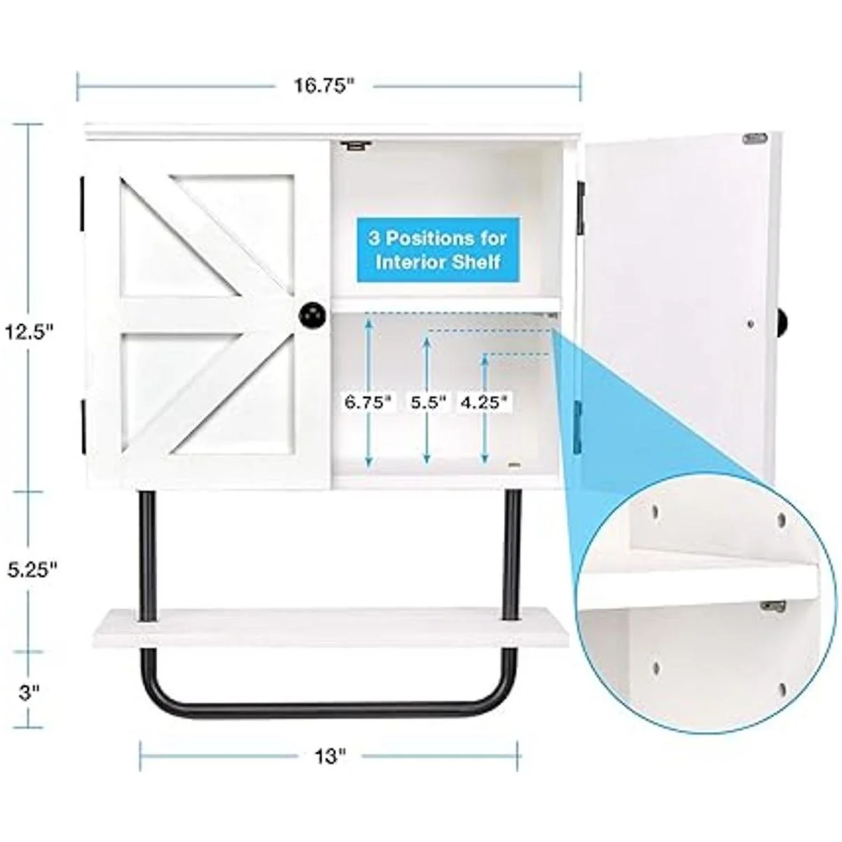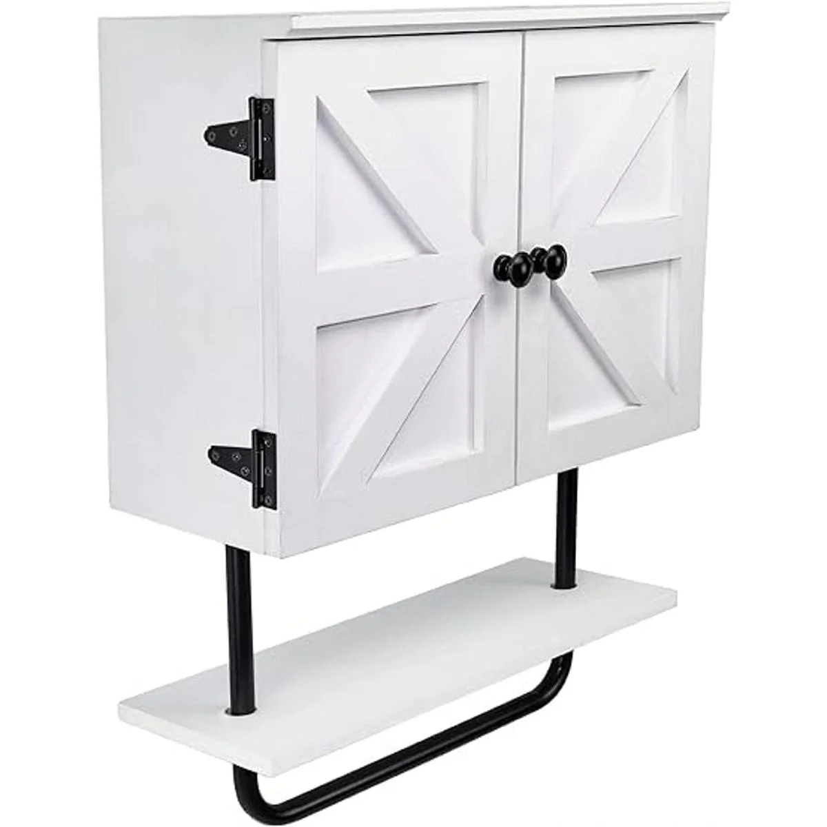Excello Global Products Barndoor Armario de pared para cuarto de baño, ahorro de espacio, gabinete de cocina con estante ajustable y toallero, color gris rústico
