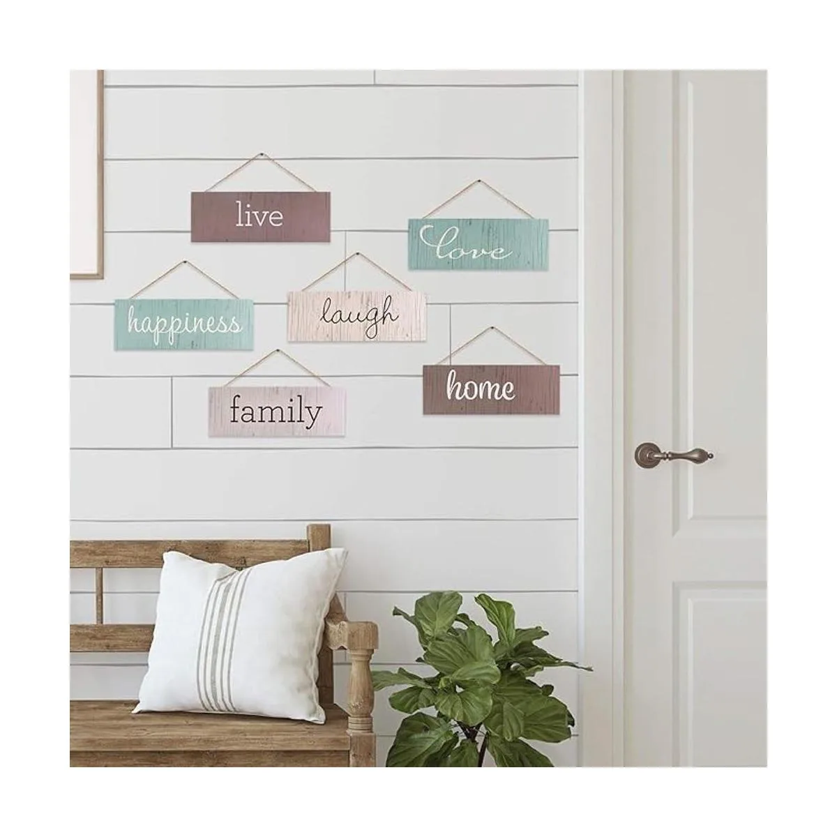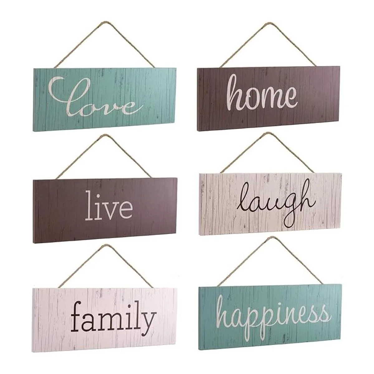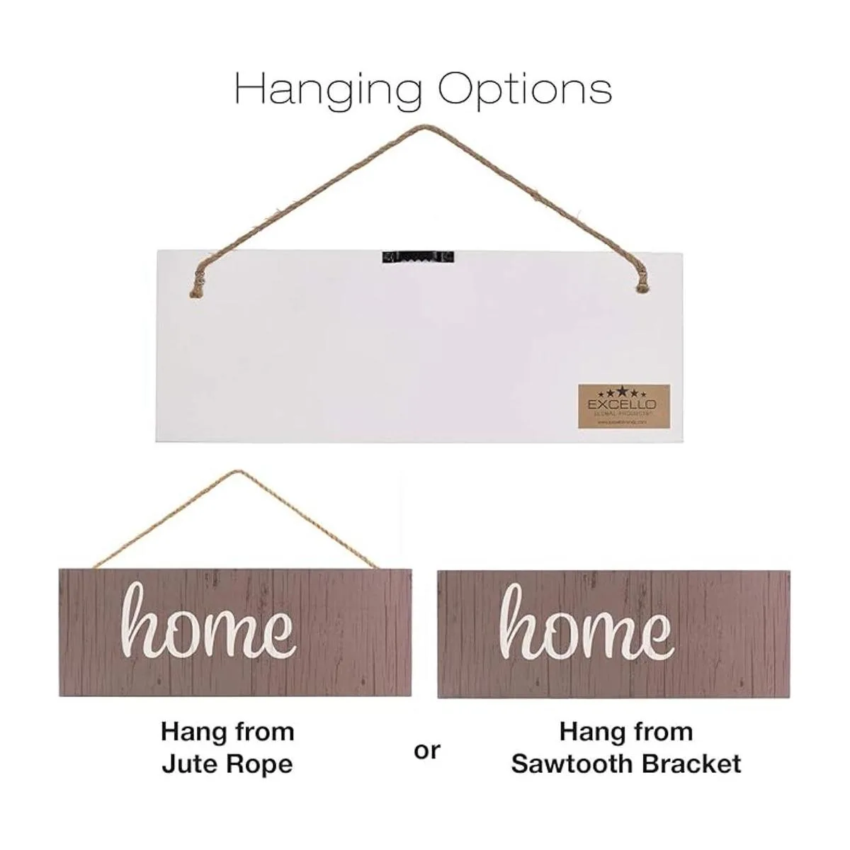 EXCELLO GLOBAL PRODUCTS Letrero colgante de decoración del hogar con gancho de diente de sierra y cuerda de yute para colgar hogar, familia, amor, risa, vida, felicidad en colores neutros