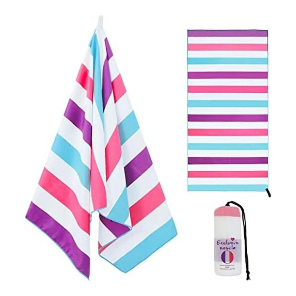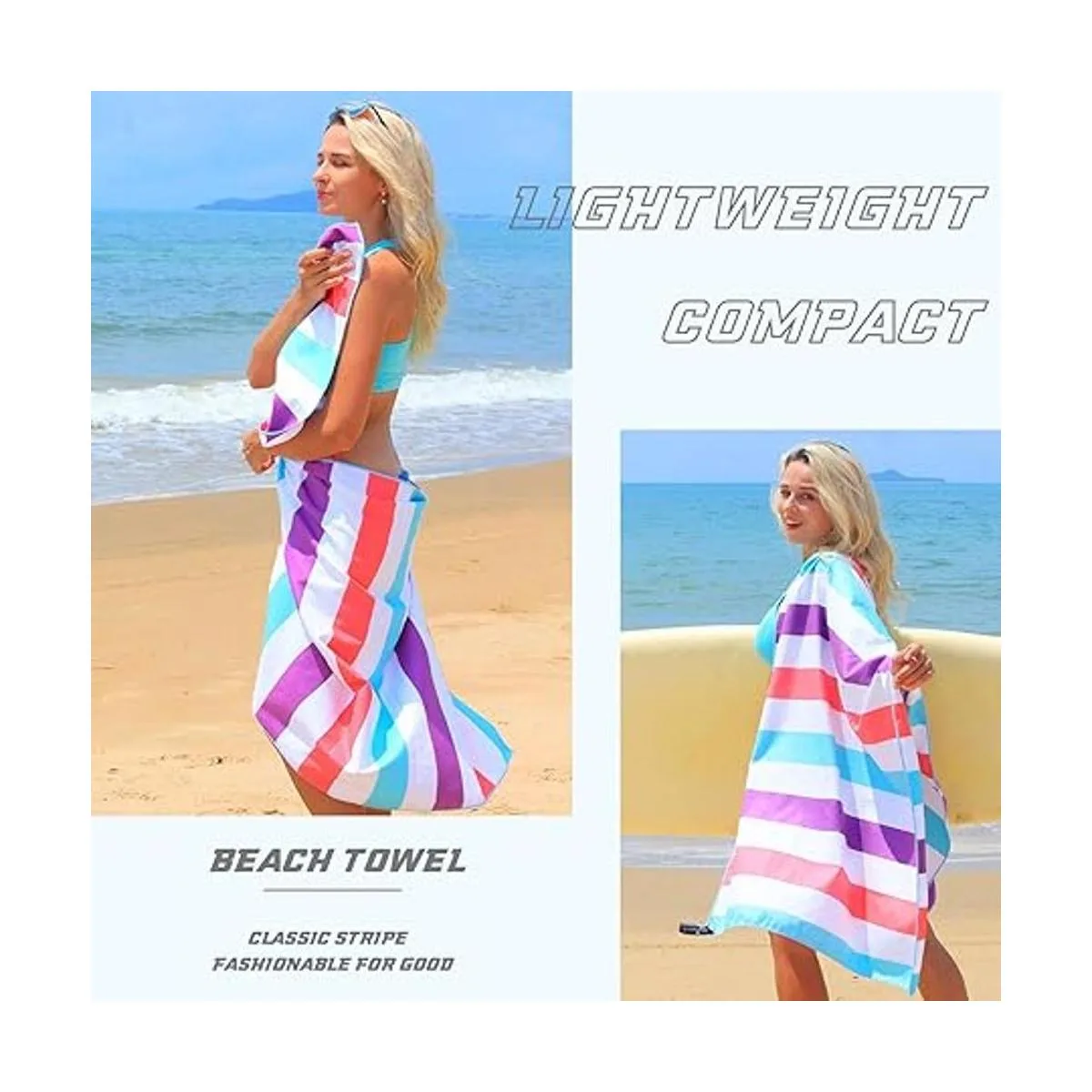 Exclusivo Mezcla toalla de playa grande de microfibra, repelente a la arena, para deportes y natación, piscina toalla para niños y adultos rayas moradas, 30.0 x 60 pulgadas, secado rápido y ligera