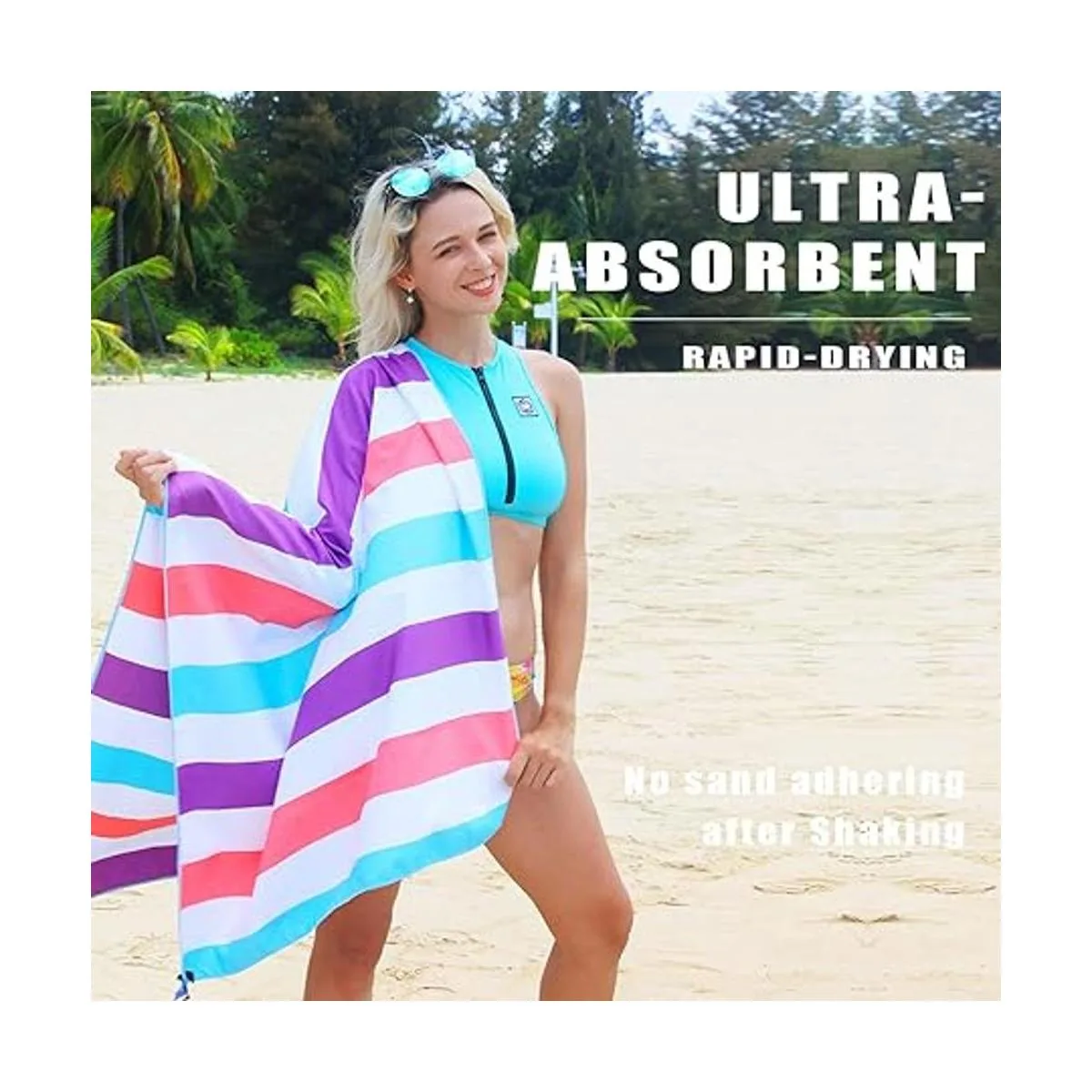 Secado rápido: hecho de tela de microfibra mixta 15 nailon y 85 poliéster, súper ligero, suave, tersa y absorbente. Esta toalla de playa se seca mucho más rápido que las comunes, y absorbe líquidos más y más rápido.