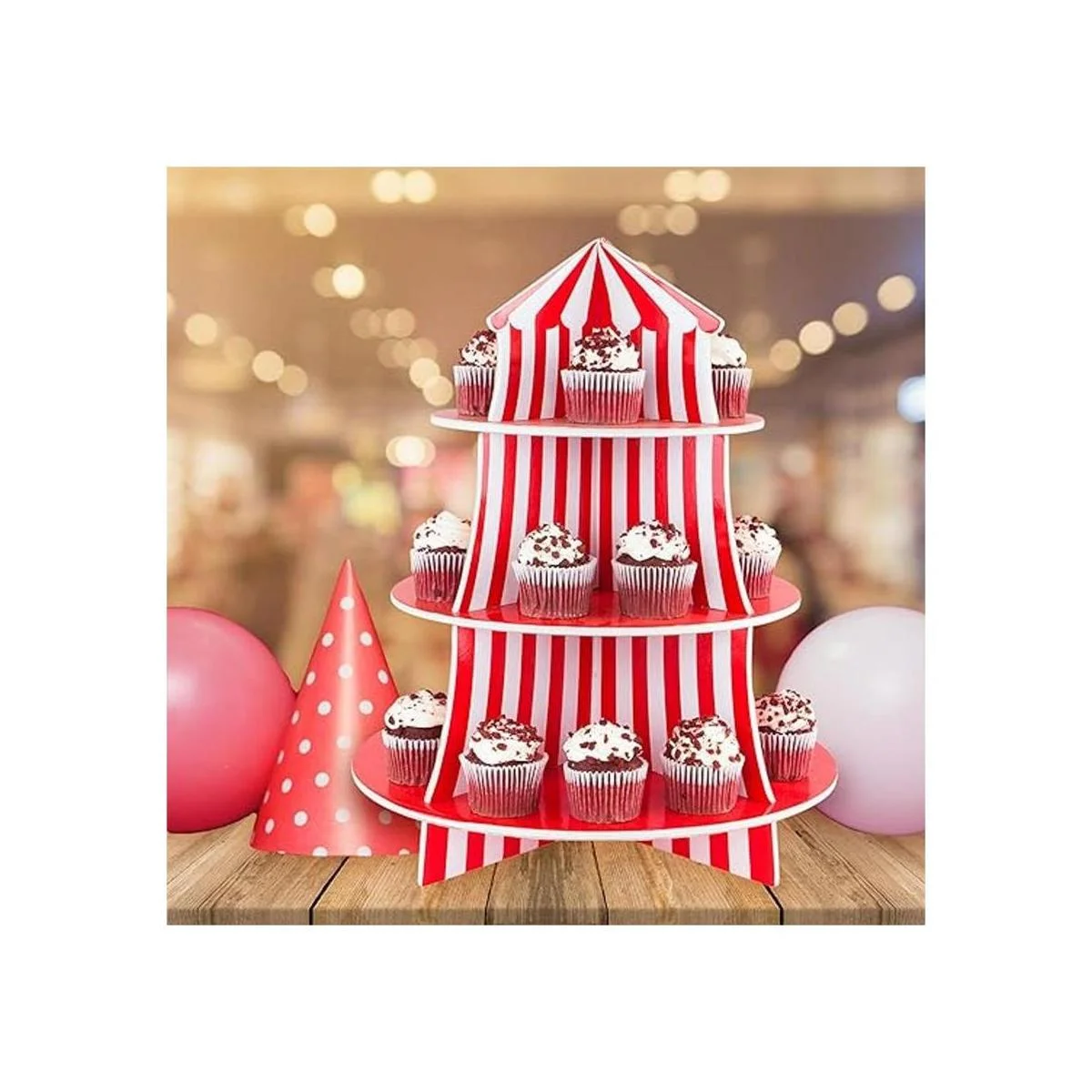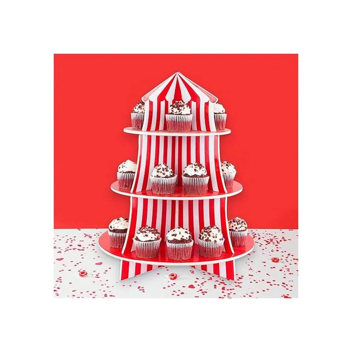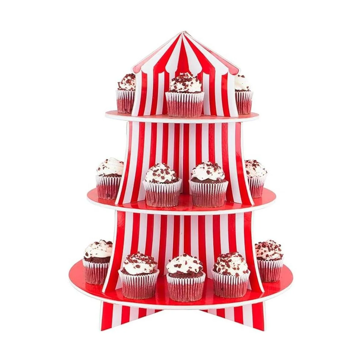 Exhibidor de poliestireno de 3 niveles para bocadillos, diseño de carpa de circo, ideal para postres, cumpleaños y demás decoraciones