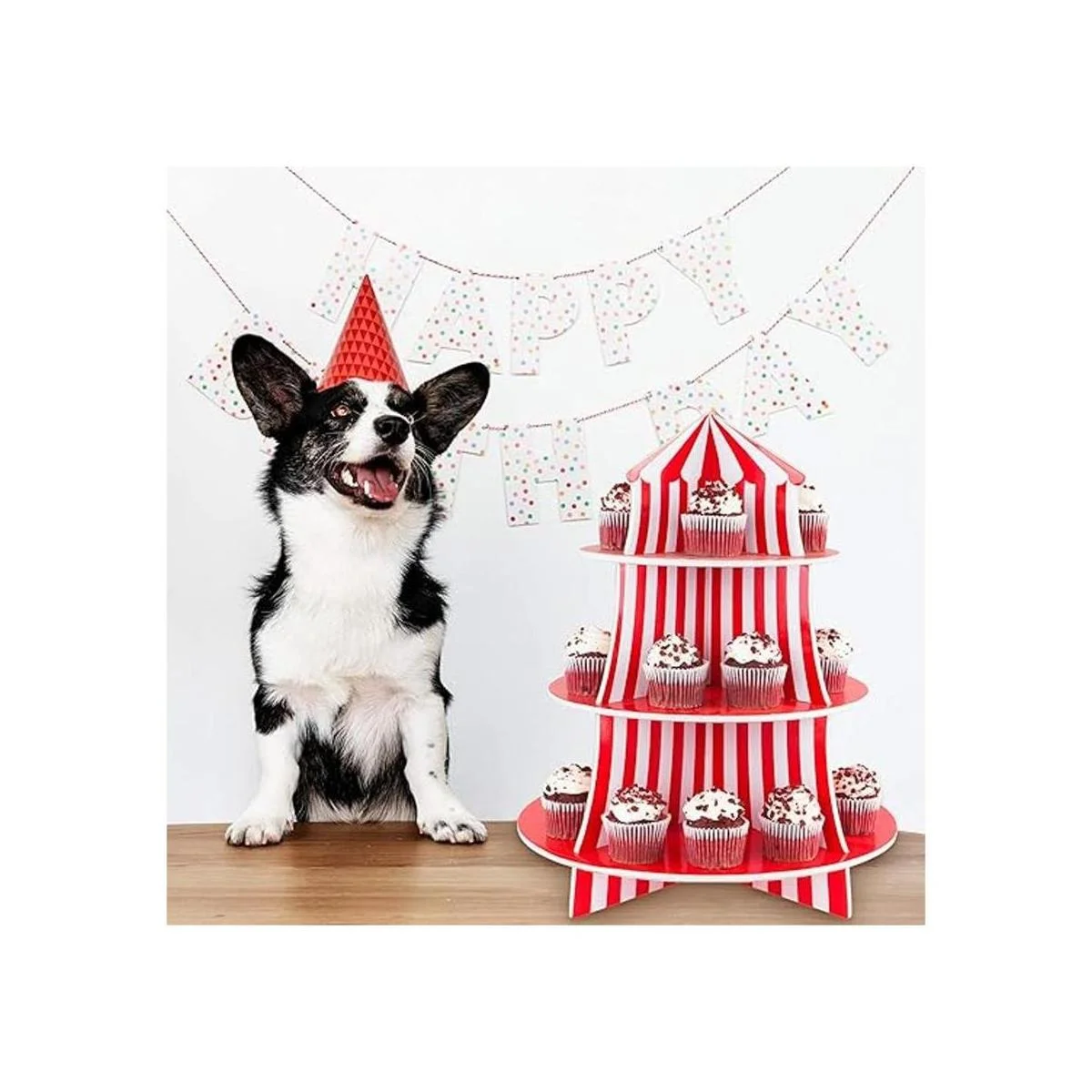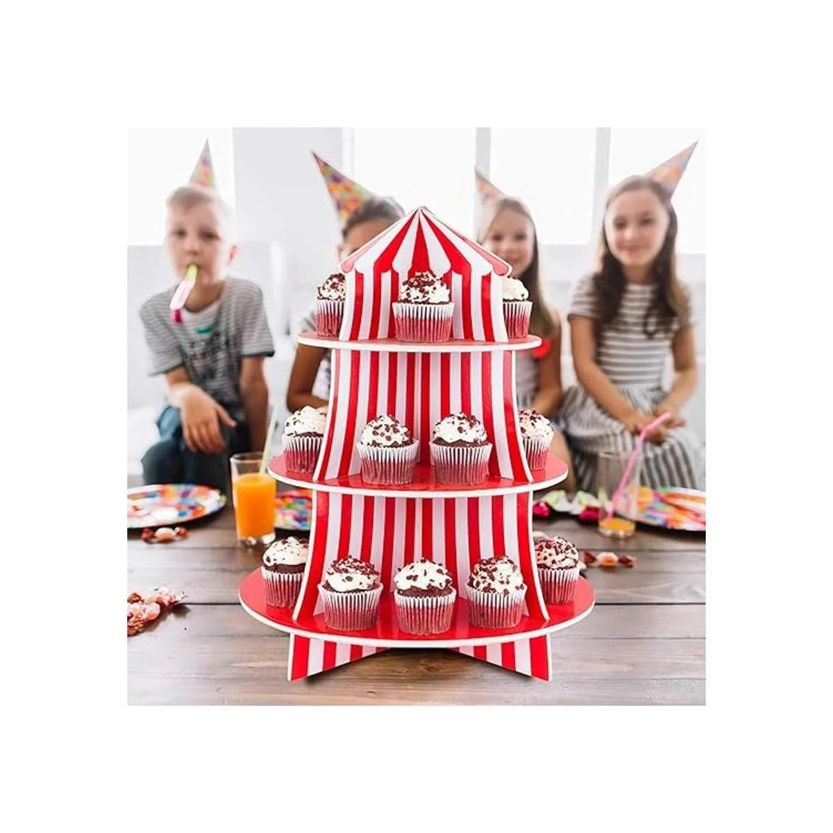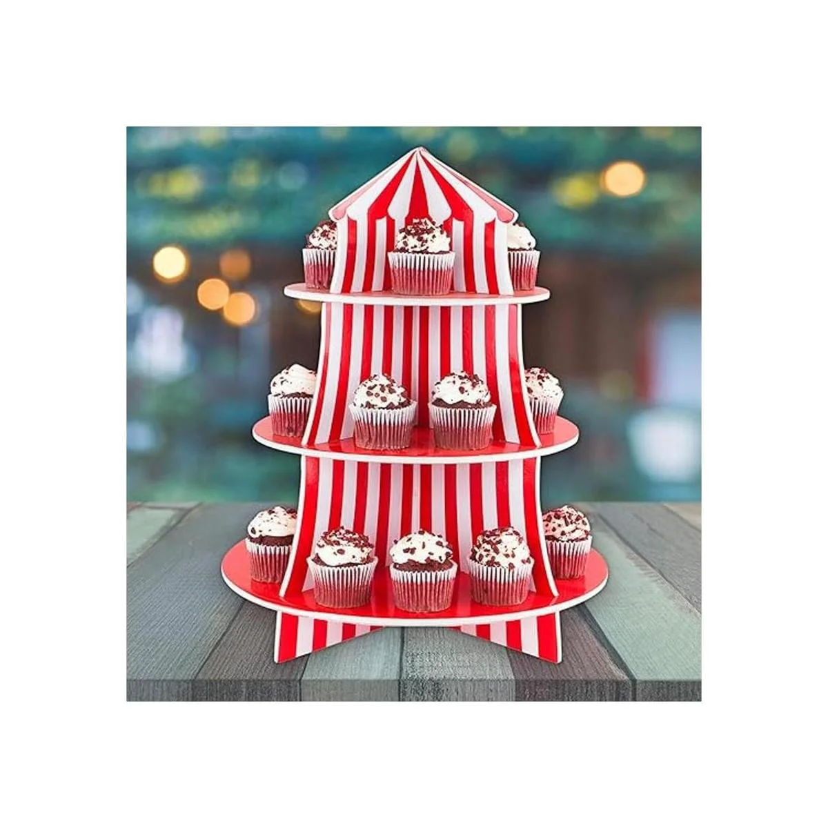 Exhibidor de poliestireno de 3 niveles para bocadillos, diseño de carpa de circo, ideal para postres, cumpleaños y demás decoraciones
