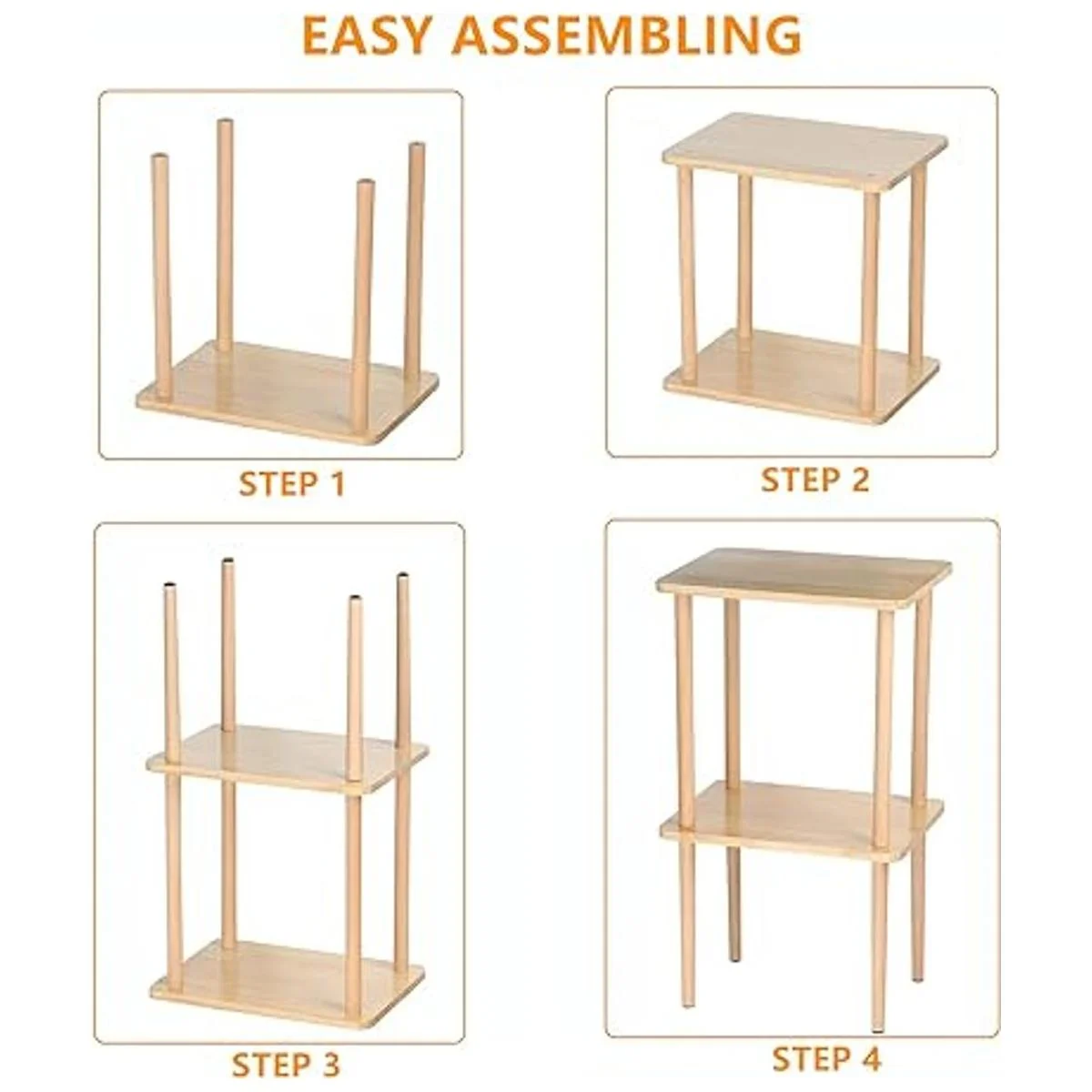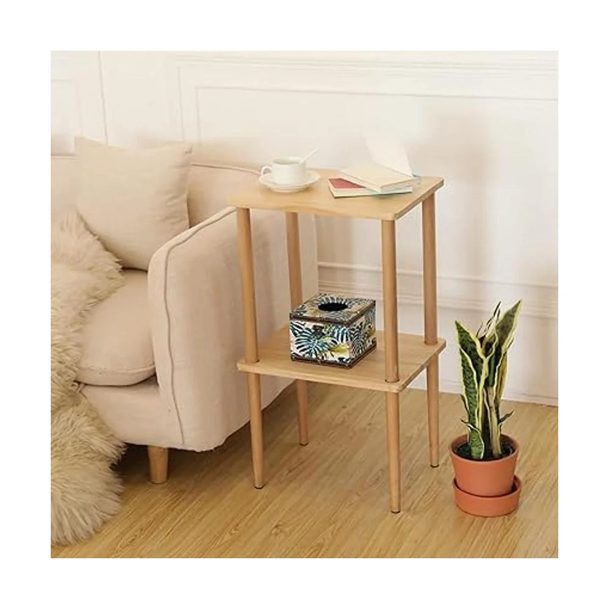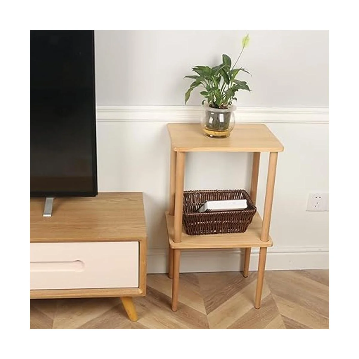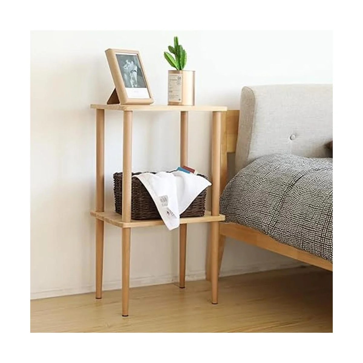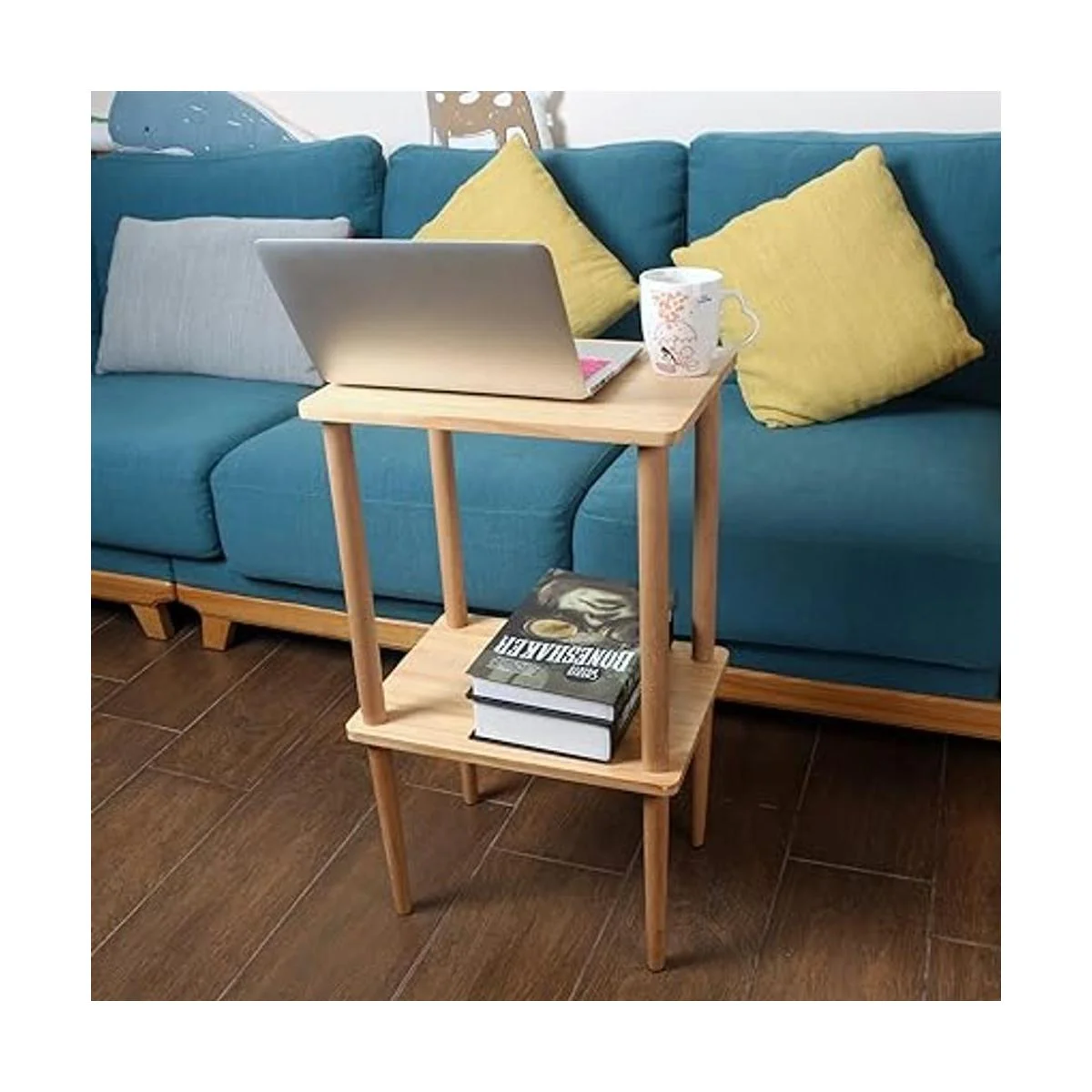 exilot Mesa auxiliar de madera maciza, mesa auxiliar de 2 niveles con estantes de almacenamiento, mesita de noche alta para sala de estar, dormitorio, oficina, montaje sin herramientas