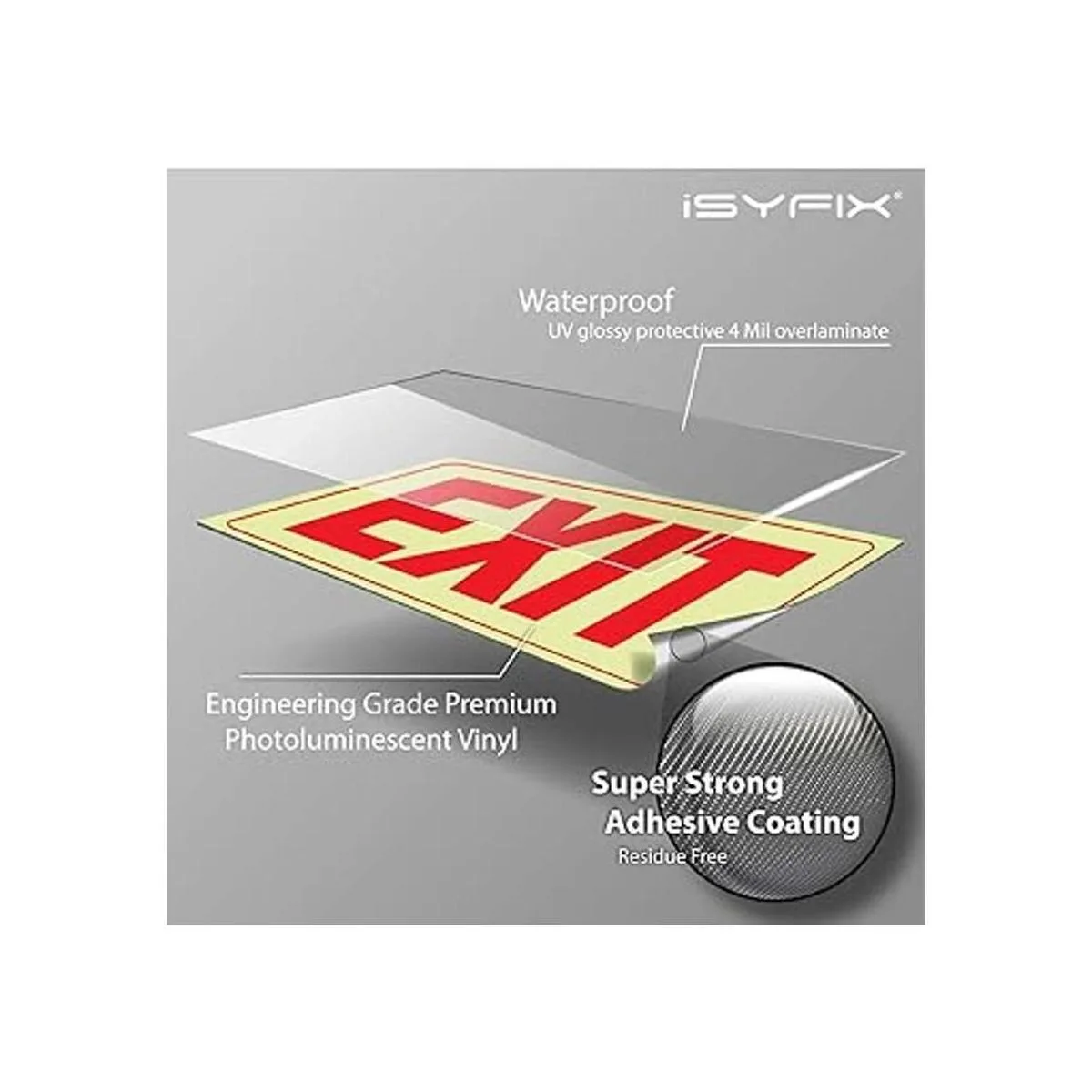 Incluye: 2 piezas de pegatinas fotoluminiscentes de salida con letras en rojo y fondo en blanco, tamaño: 10 pulgadas de ancho x 7 pulgadas de alto. Para una instalación perfecta puedes ver nuestro vídeo.