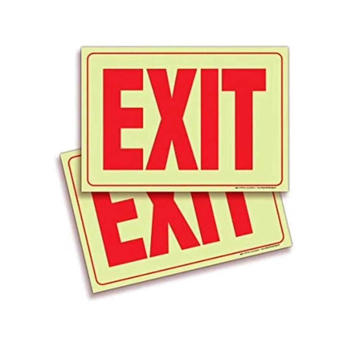 Exit Fotoluminiscentes Pegatinas Paquete de 2 10.0 x 7.0 in Vinilo autoadhesivo premium que brilla en la oscuridad, laminado para Ultravioleta definitiva, Clima, Arañado, Agua y Resistente a la Descoloración, Interior y Exterior