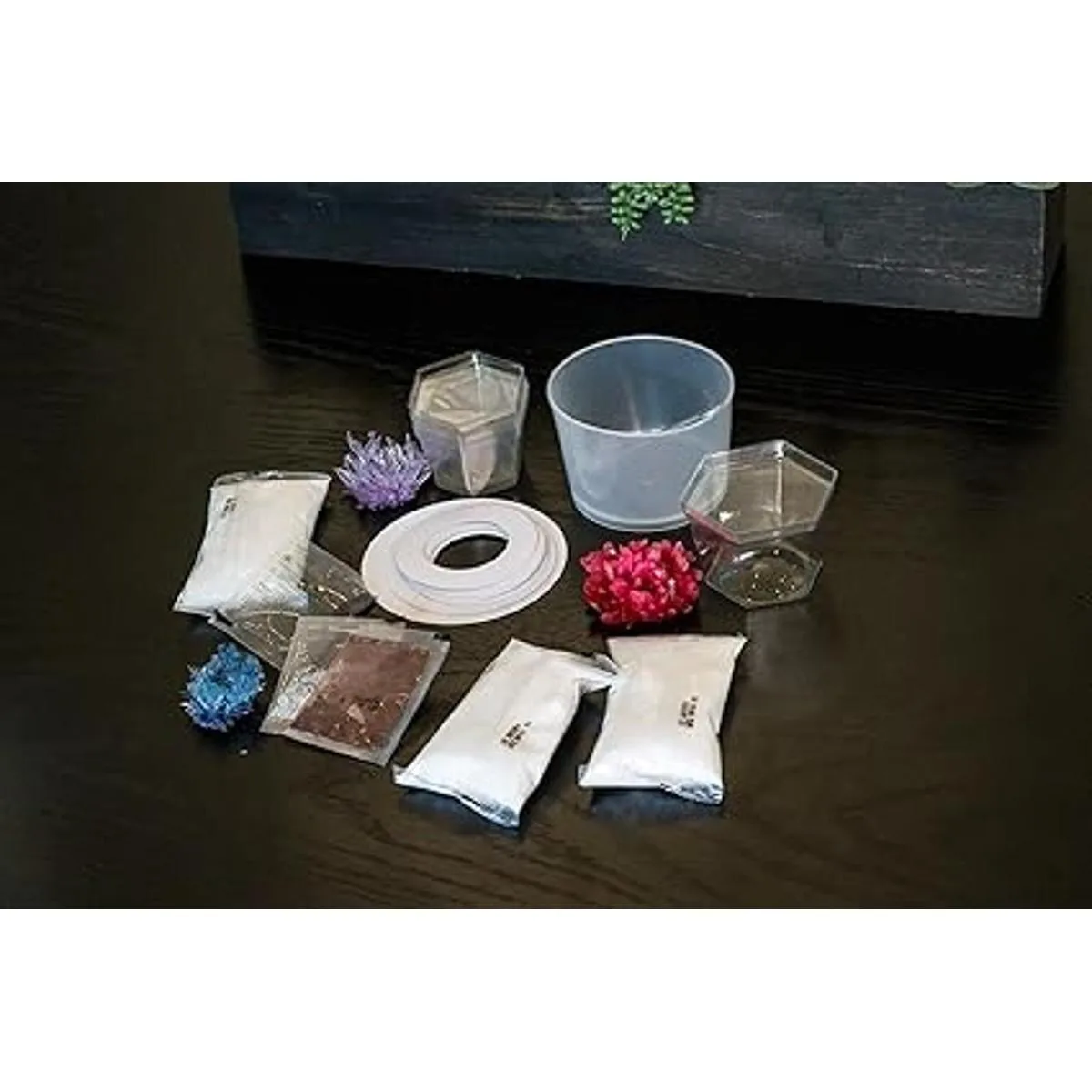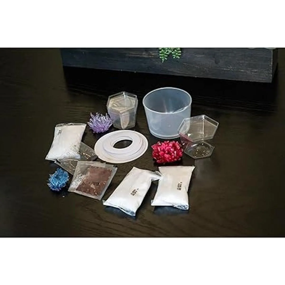 Este kit científico contiene todos los materiales necesarios para realizar siete experimentos diferentes de crecimiento de cristal.