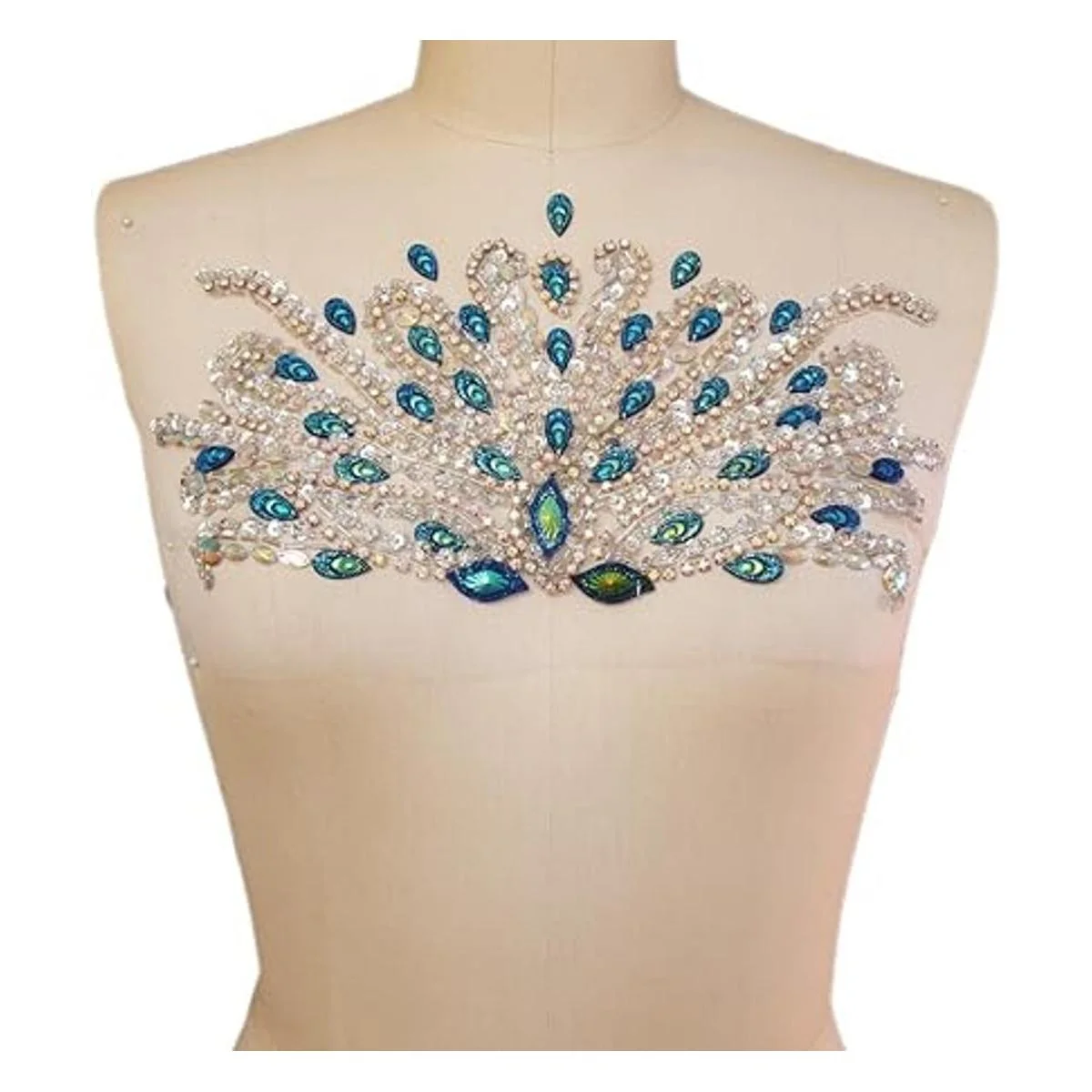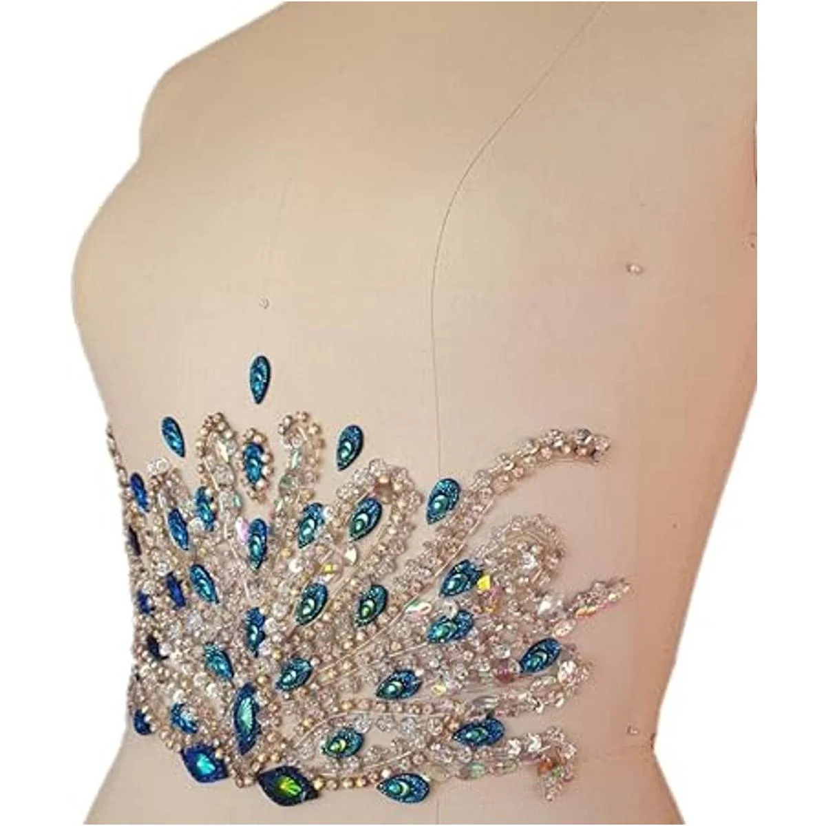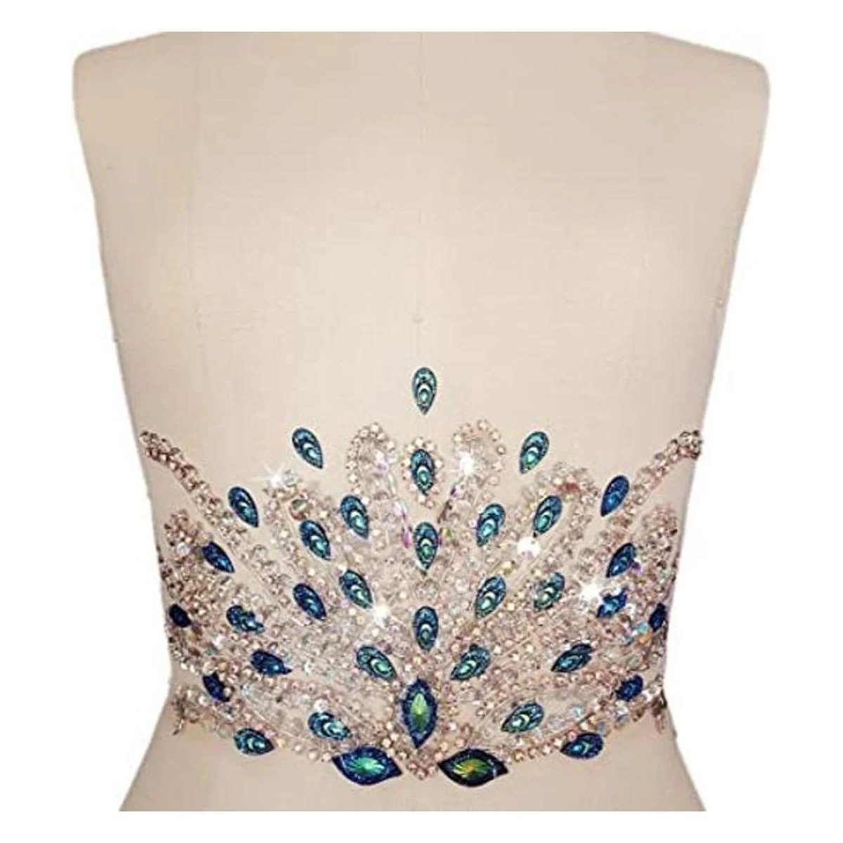 Exquisito parche de cristales de imitación para coser en el cinturón de diamantes de imitación, hecho a mano, 6.7 x 12.2 in, accesorio de vestir para decoración de la cintura