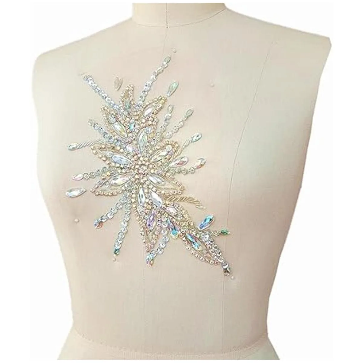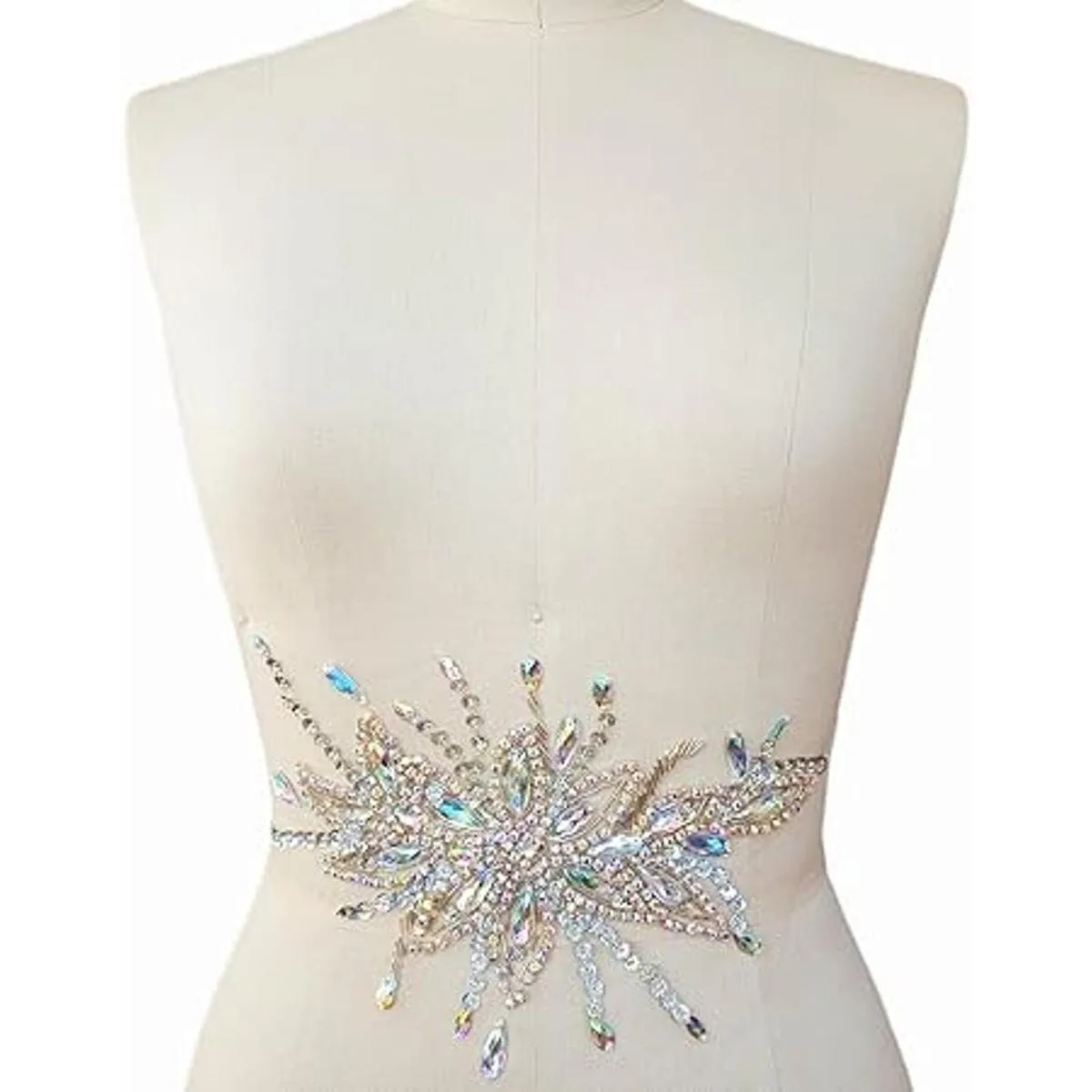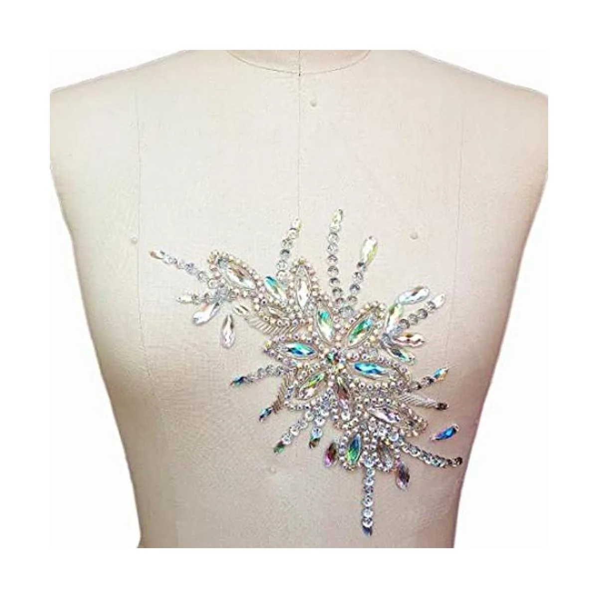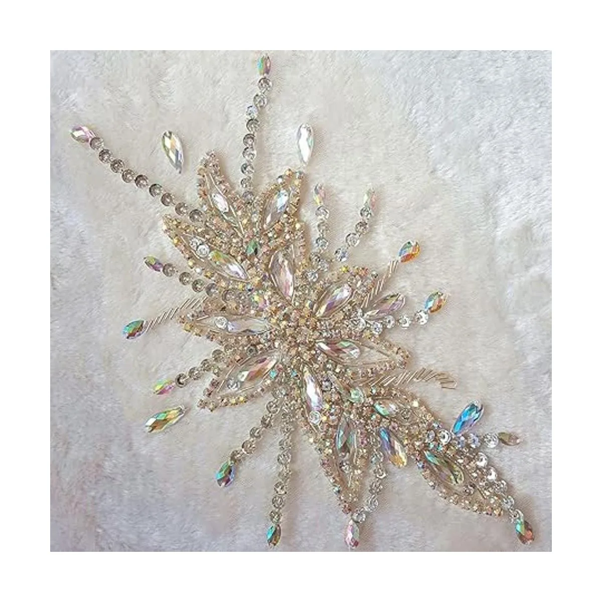 Exquisitos parches de cristal brillante hechos a mano de color AB, únicos y puros, apliques de diamantes de imitación cosidos con piedras, cuentas de lentejuelas para vestido de boda, accesorios manuales, cinturón, decoración de la cintura del pecho AB