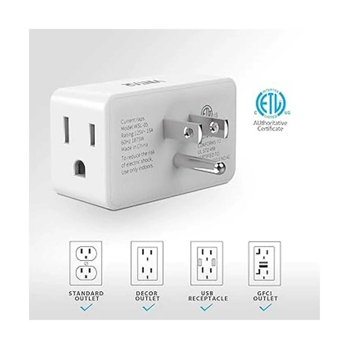 Adaptador de 3 tomas: este divisor de enchufe de salida máxima es de 125 V/15 A/1875 W, ideal para conectar portátiles, teléfonos celulares, cámaras, afeitadoras, etc. Puedes deshacerte de esa horrible y voluminosa regleta que hace que tu hogar se vea más elegante.