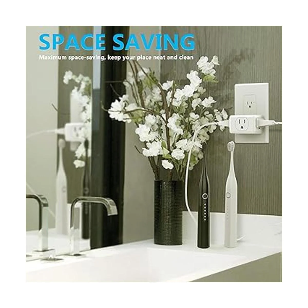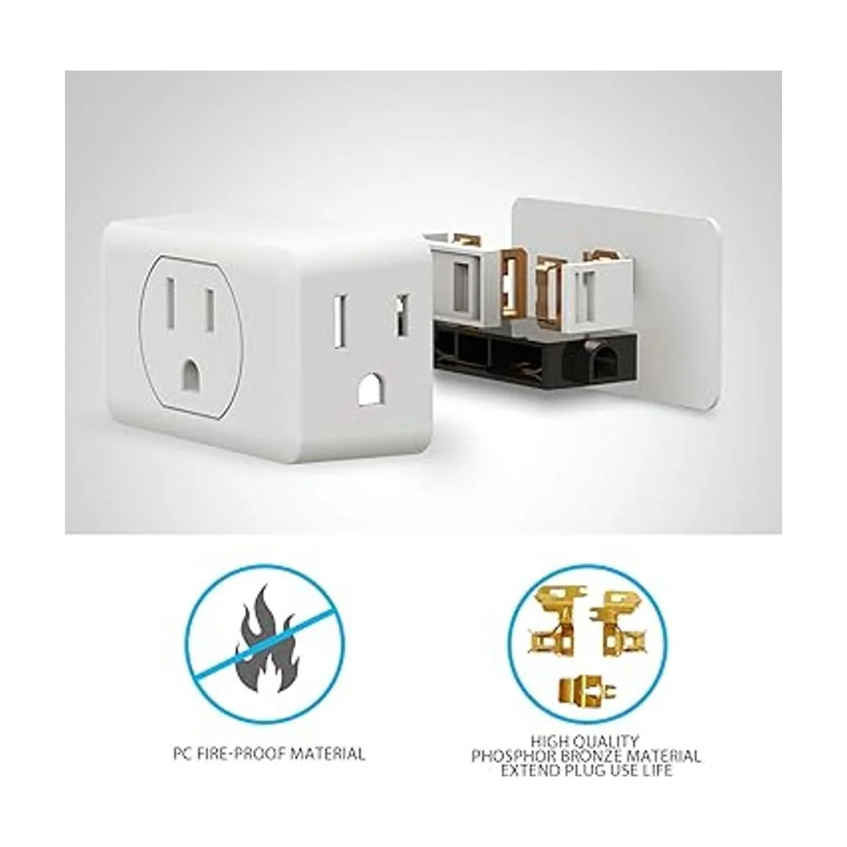 Salida de enchufe múltiple: esta caja extensora de pared puede hacer 1 toma en 3 conectados a tierra. Acepta un enchufe estándar americano de 3 clavijas plano y te permite alimentar 3 dispositivos al mismo tiempo sin ningún bloqueo.