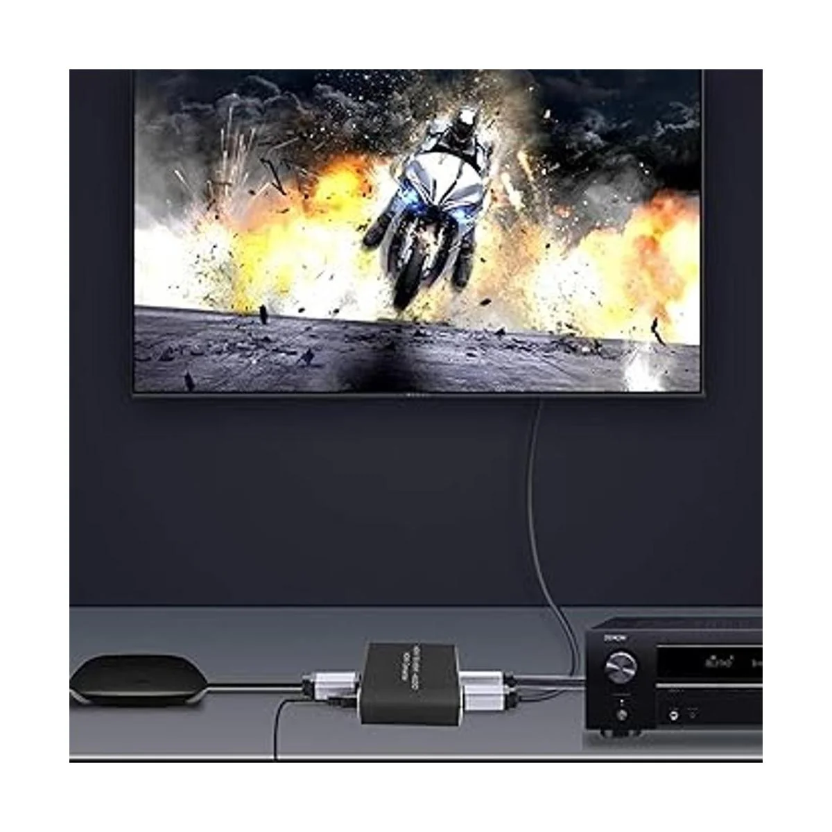 HDMI a HDMI y audio Una entrada HDMI a una salida HDMI Toslink óptico y salida de audio AUX analógica de 0.138 in. Puede extraer audio de una señal HDMI digital a tu barra de sonido, amplificador, auriculares y otros receptores de audio sin conectar TV o monitor.