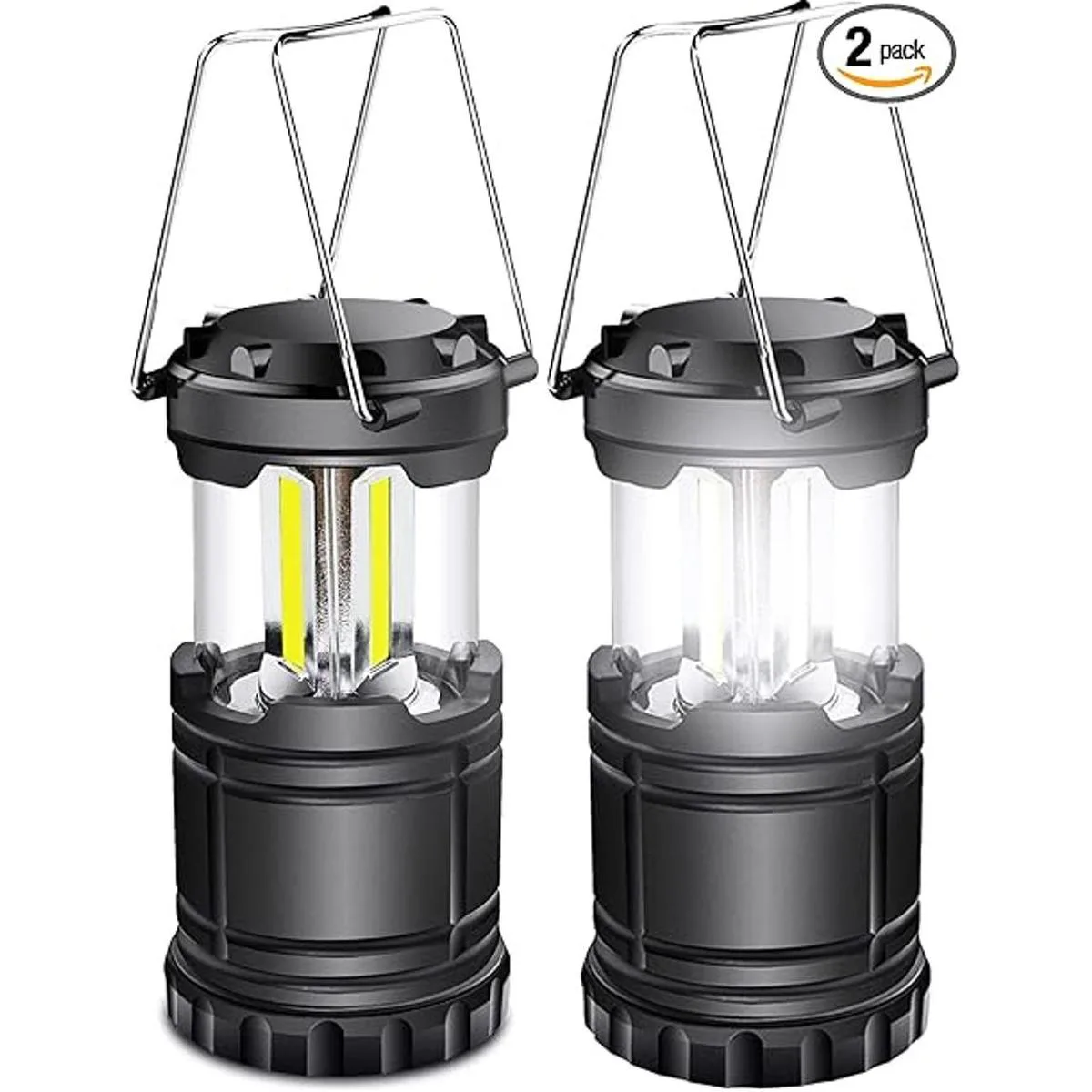 EXTRASTAR Paquete de 2 linternas LED de campamento, linternas de supervivencia portátiles, luz de tienda impermeable, adecuadas para huracanes, emergencias, tormentas, interrupciones, linternas plegables al aire libre, color negro