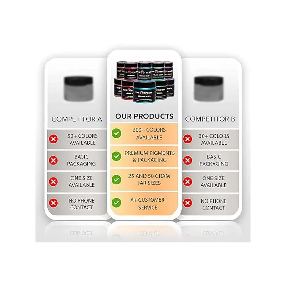 Calidad inmejorable y servicio al cliente: calidad inmejorable y servicio al cliente: las perlas de mica Eye Candy están respaldadas por garantía de calidad superior, pureza y soporte rápido y sensible. Ponte en contacto con nosotros para cualquier pregunta o preocupación para obtener un servicio fiable en el que puedes confiar.