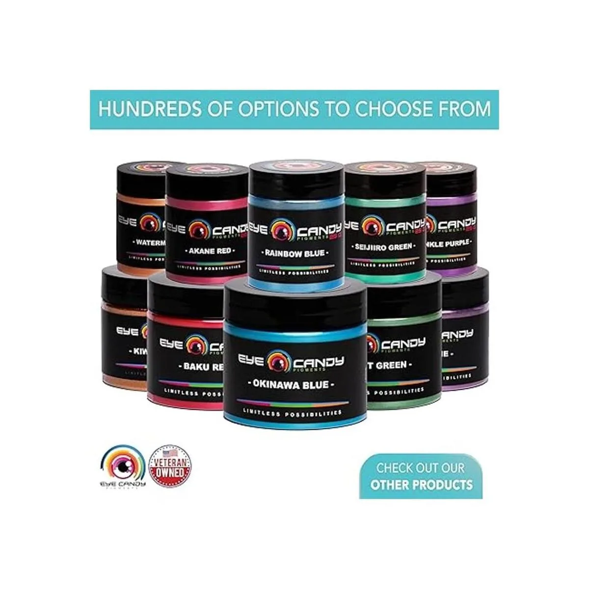 Pureza ultrafina: las perlas de mica Eye Candy son de 10 a 60 micras de tamaño para mezclar mejor con resinas, laca, epoxi, esmalte de uñas, látex, cosméticos, pintura automotriz, lociones, cremas, arcilla polimérica, barnices, esmaltes y otros artículos de uso personal.