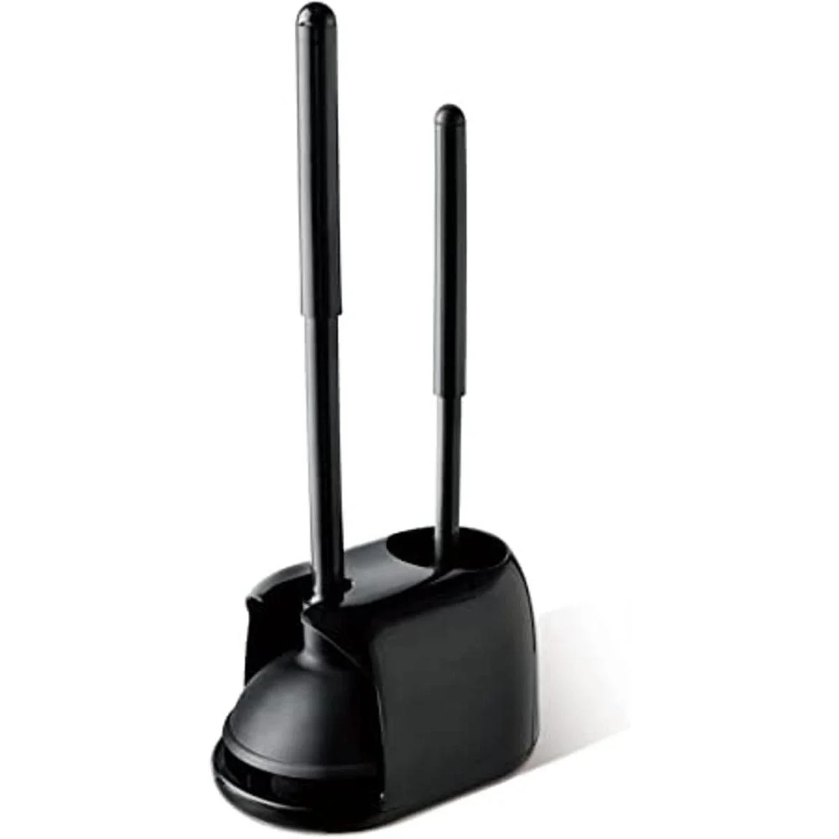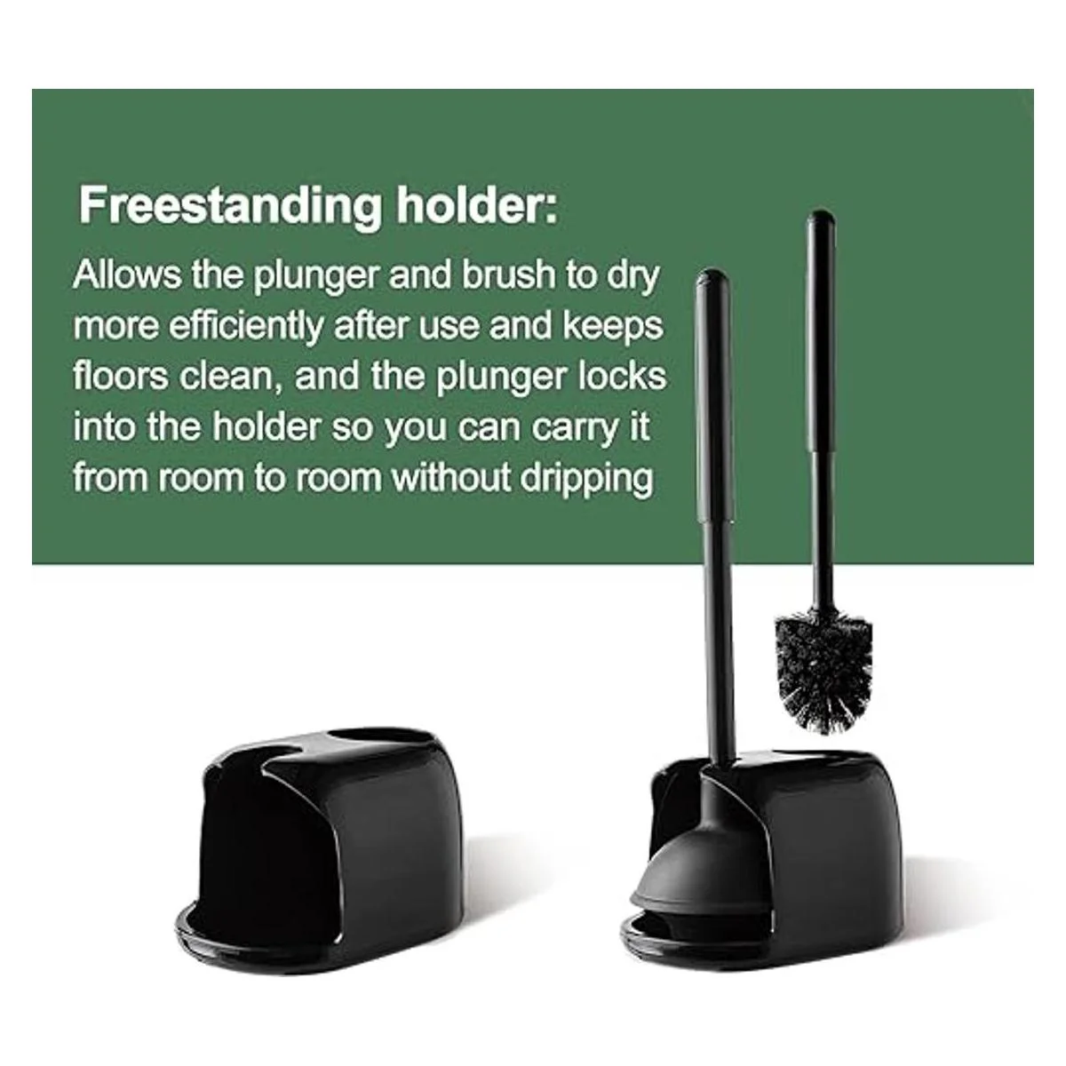 Eyliden Juego de émbolo y cepillo de inodoro 2 en 1 con soporte, herramientas de limpieza de baño con soporte para organizador negro