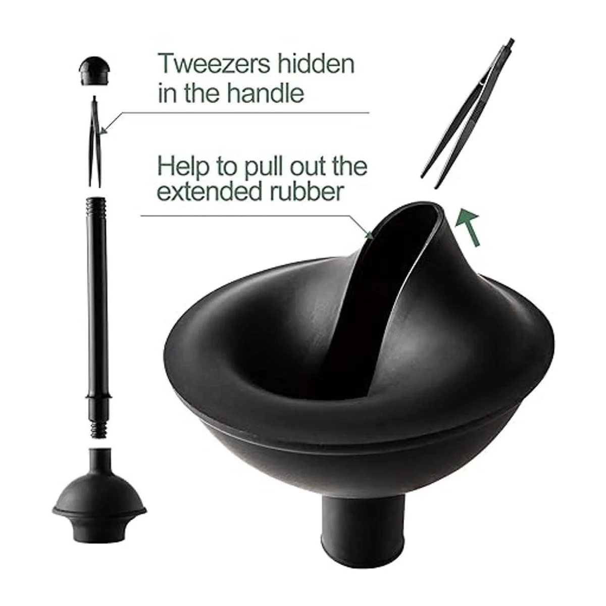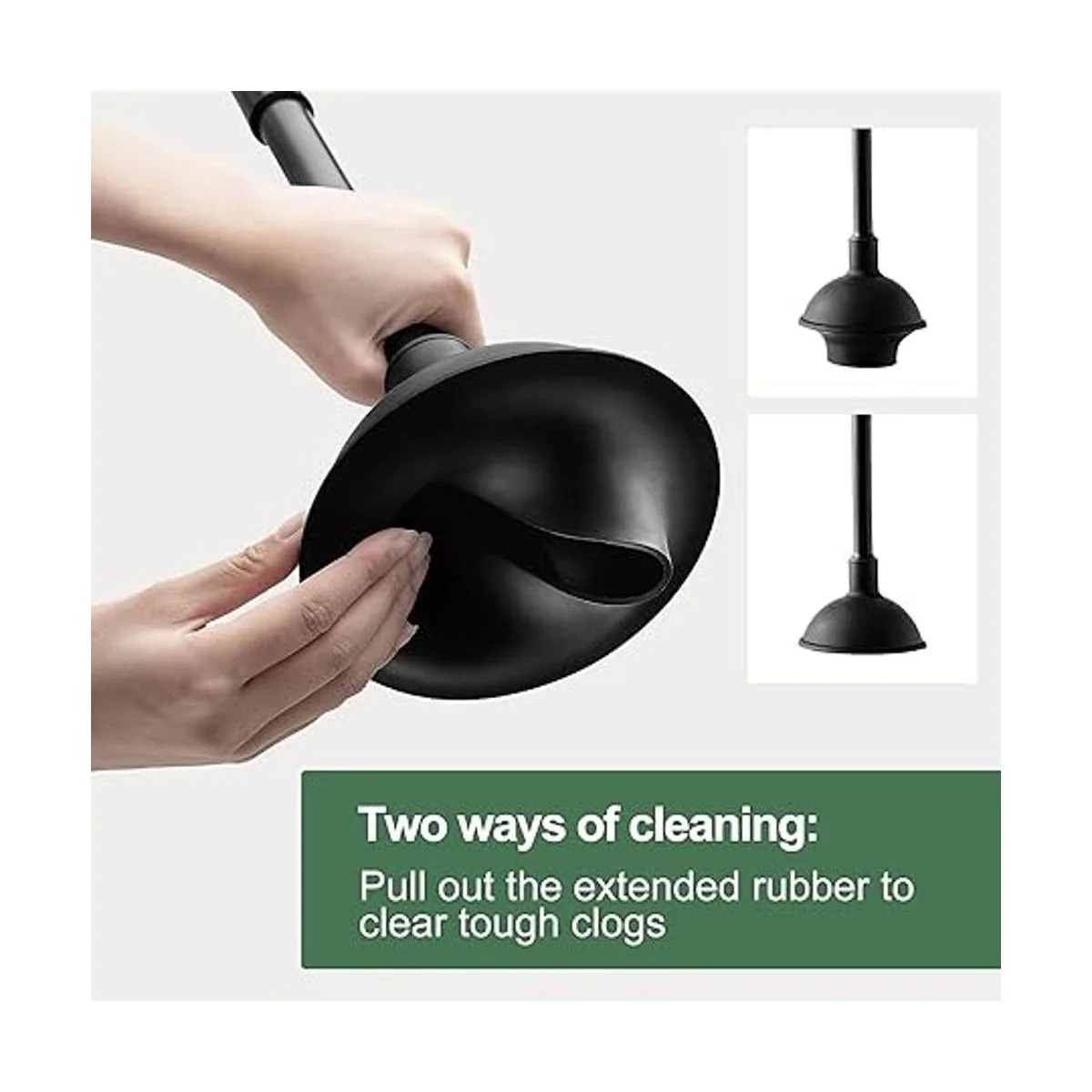 mbolo eficiente: la ventosa está hecha de TPR de alta calidad, el émbolo de inodoro suave y elástico crea un sellado ultra hermético alrededor del desage, proporciona la máxima potencia de inmersión para limpiar obstrucciones difíciles en inodoros, desages de ducha y fregaderos.