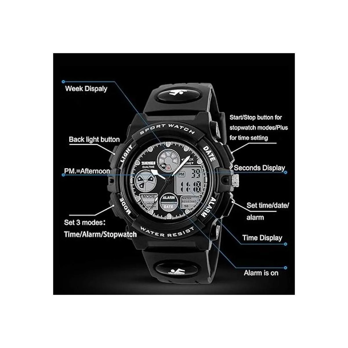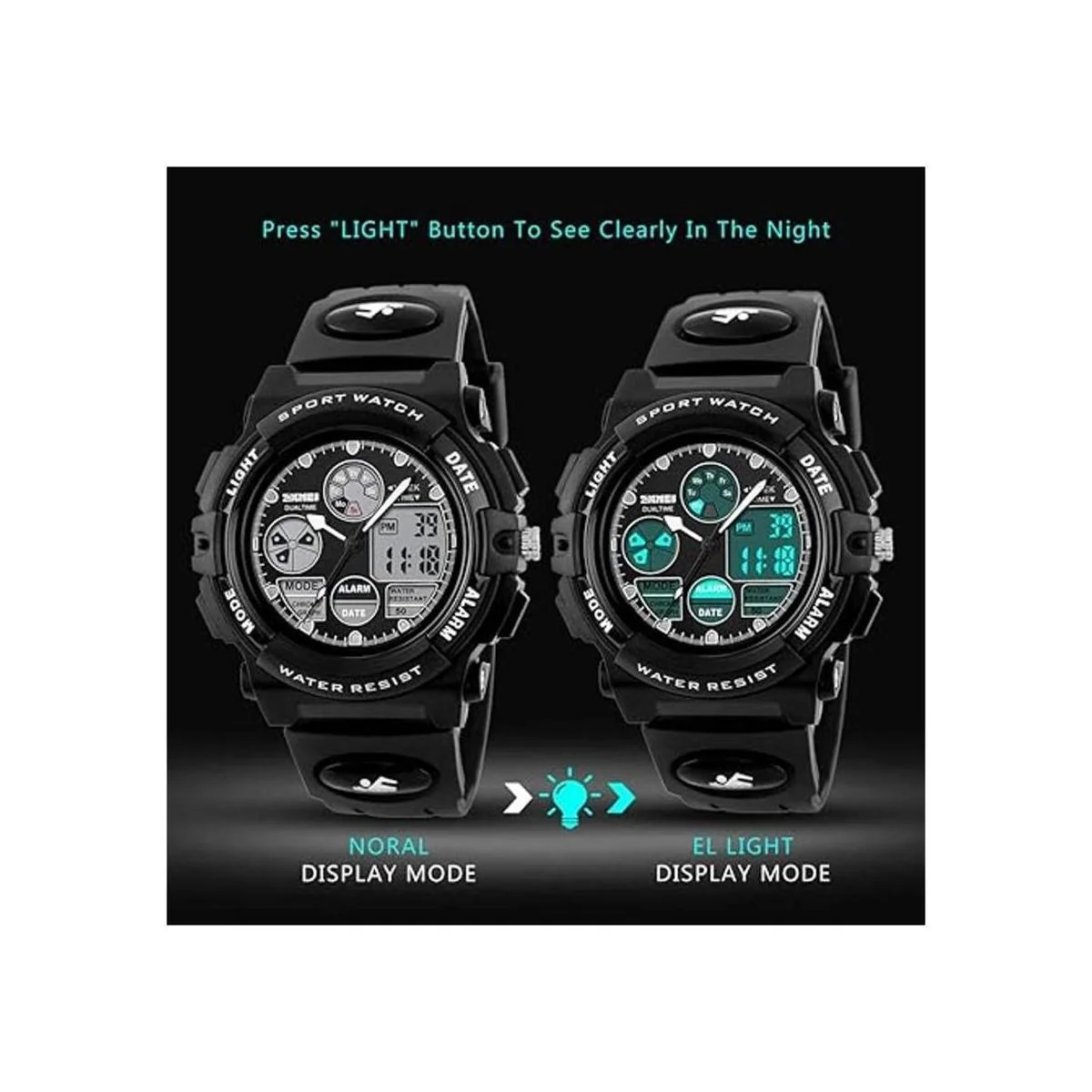 Reloj deportivo funcional para niños, puede ajustar la hora/fecha/semana/cronómetro/alarma/hora dual libremente; la retroiluminación EL será conveniente para comprobar la hora claramente en la oscuridad, lo mejor para la vida diaria de los niños, jugar al aire libre y campo de ocio