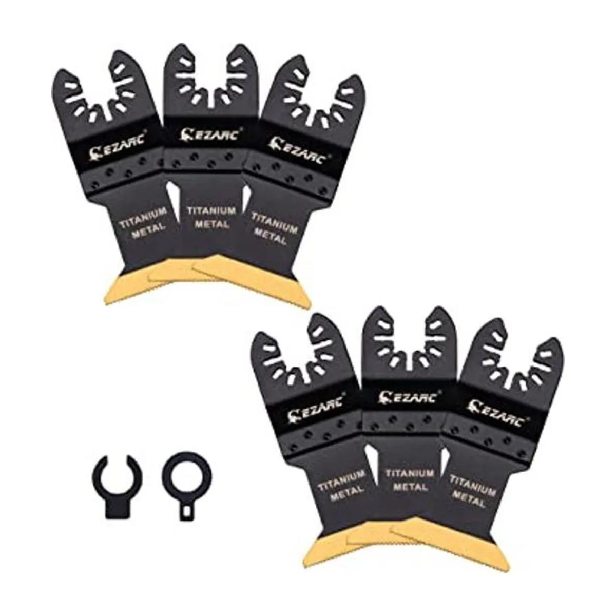 EZARC Cuchillas oscilantes multiherramienta de titanio, 6 cuchillas de sierra oscilantes para clavos de madera de metal, tornillos de corte, kits universales de cuchillas de herramientas de liberación rápida