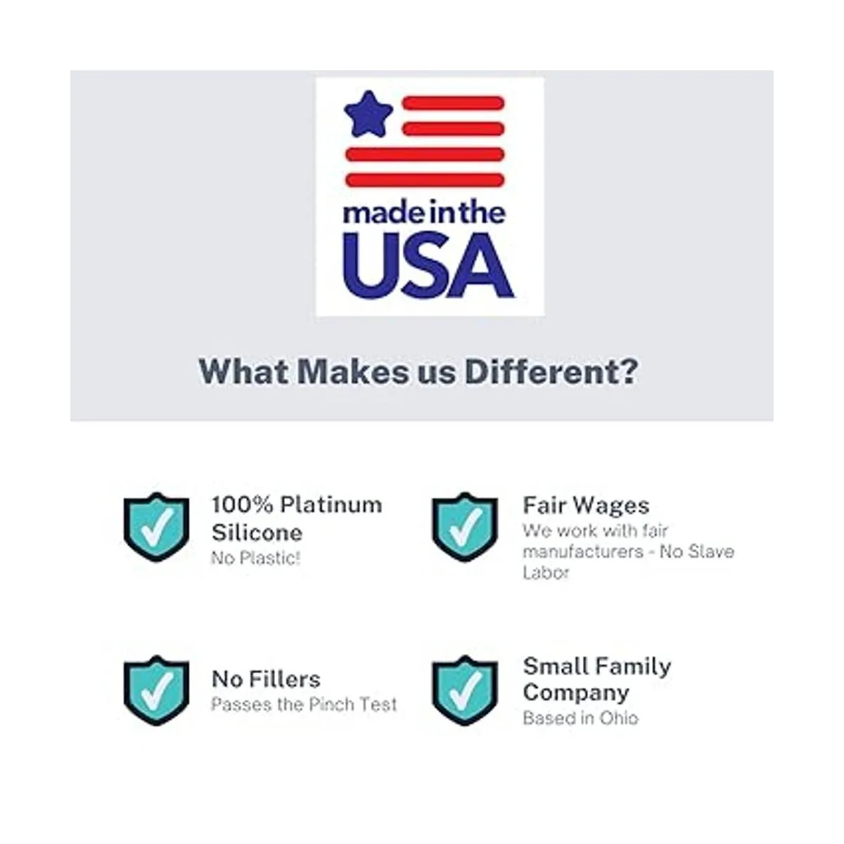Fabricado en Estados Unidos: todos nuestros productos están fabricados de forma segura y orgullosa en los Estados Unidos, apoyando a los fabricantes locales y creando puestos de trabajo en Estados Unidos. Creemos en apoyar a las empresas locales y verificar que los materiales de nuestro producto son seguros para tus pequeños.