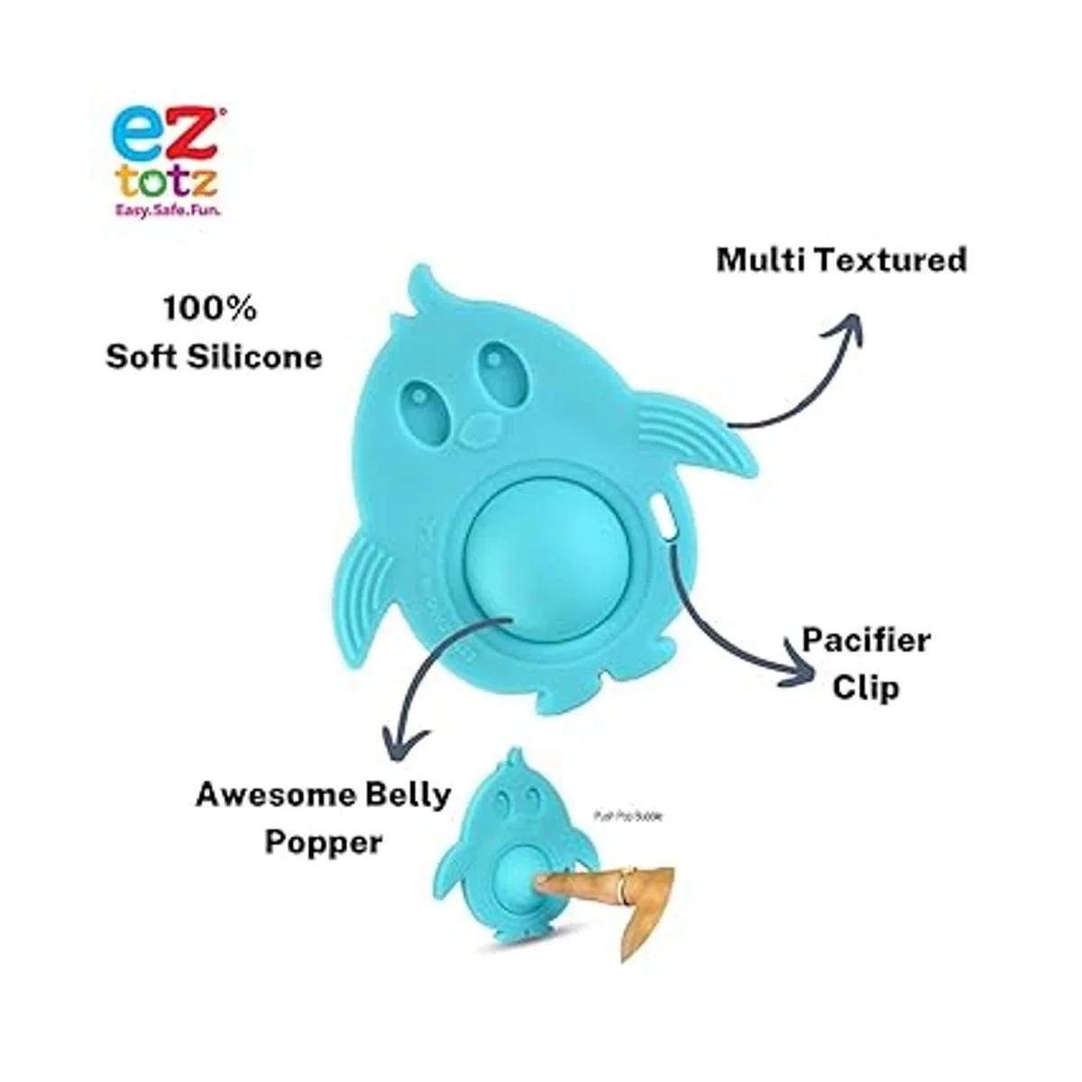 Eztotz Popz Juguete para mordedor para bebé, fabricado en los Estados Unidos, juguetes sensoriales Pop It para 06 meses 100 silicona hoyuelos para recién nacidos y bebés, sin BPA