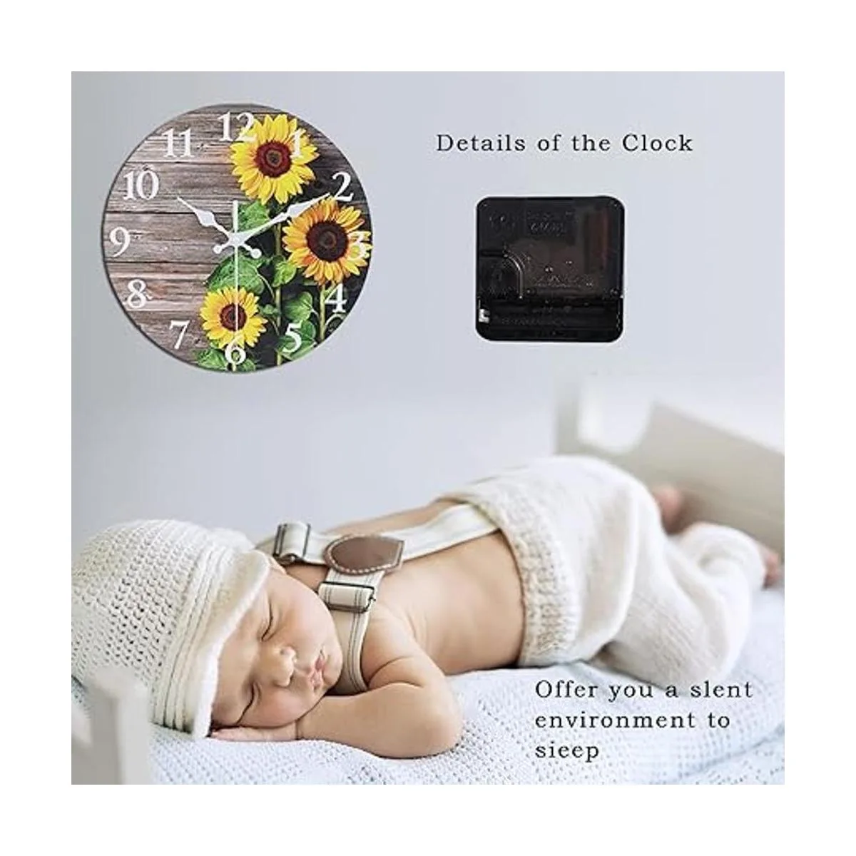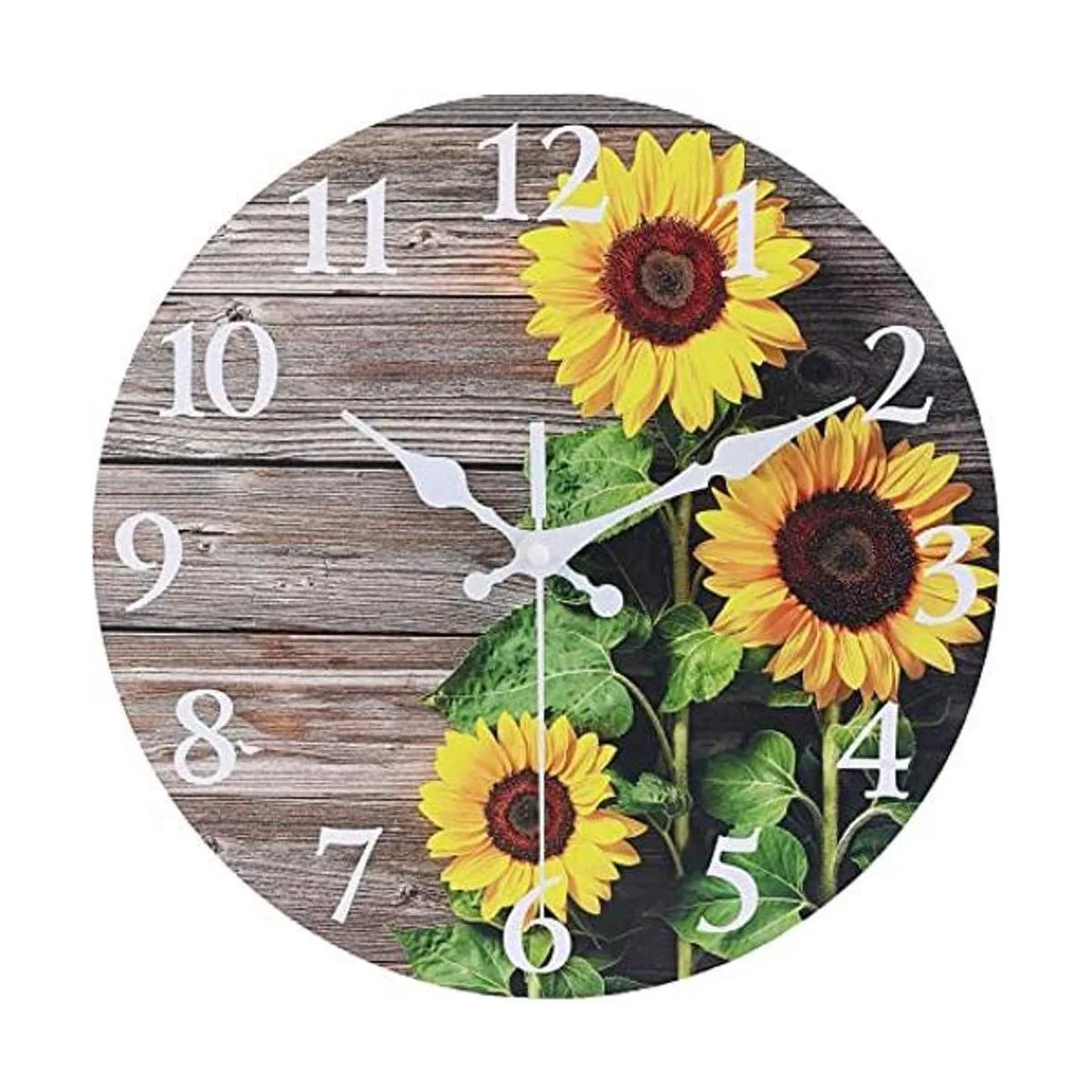 EZXZZ Reloj de pared redondo con diseño de girasol de 10 pulgadas para decoración de baño, silencioso, sin tictac