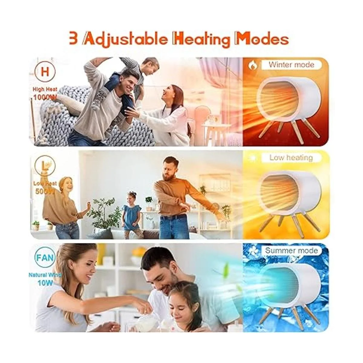 3 modos de calefacción ajustables Este pequeño calentador de espacio emite mucho calor. Nuestro calentador personal tiene 3 modos: 1000 W de calor alto H, 500 W de calor bajo L, viento natural F, calienta el espacio o la habitación rápidamente, te aporta calidez adecuada como necesites, función de apagado de temporizador de 1 a 3 horas si no estableces el temporizador, 6 horas apagado hace que sea más cómodo, es perfecto para uso en interiores, como oficina, escritorio, sala de estar, dormitorio y baño, simplemente enciende el ajuste del calentador que desees para disfrutar de calor reconfortante.