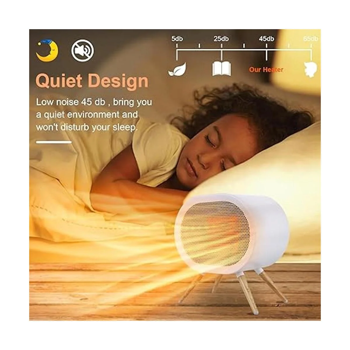 Material duradero: nuestros calentadores pequeños pero poderosos para uso en interiores adoptan los últimos materiales resistentes al fuego, el elemento de calefacción de cerámica PTC hace que este calentador de escritorio sea más duradero y más eficaz calentamiento más rápido, este ventilador de calentador se puede calentar en 2 segundos. Bajo ruido de 45 dB, te ofrece un ambiente tranquilo y no molestará tu sueño. Este pequeño calentador de espacio es un regalo perfecto para aquellos que no pueden manejar el frío en días fríos, deja que sientan tu amor y cuidado