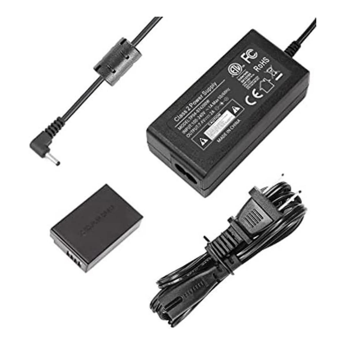 Especificaciones: Entrada: 100240 V CA 50/60 Hz, Salida: 7,4 V/2 A 14,8 W; cable CA 1,2 M, cable CC 4.9 ft