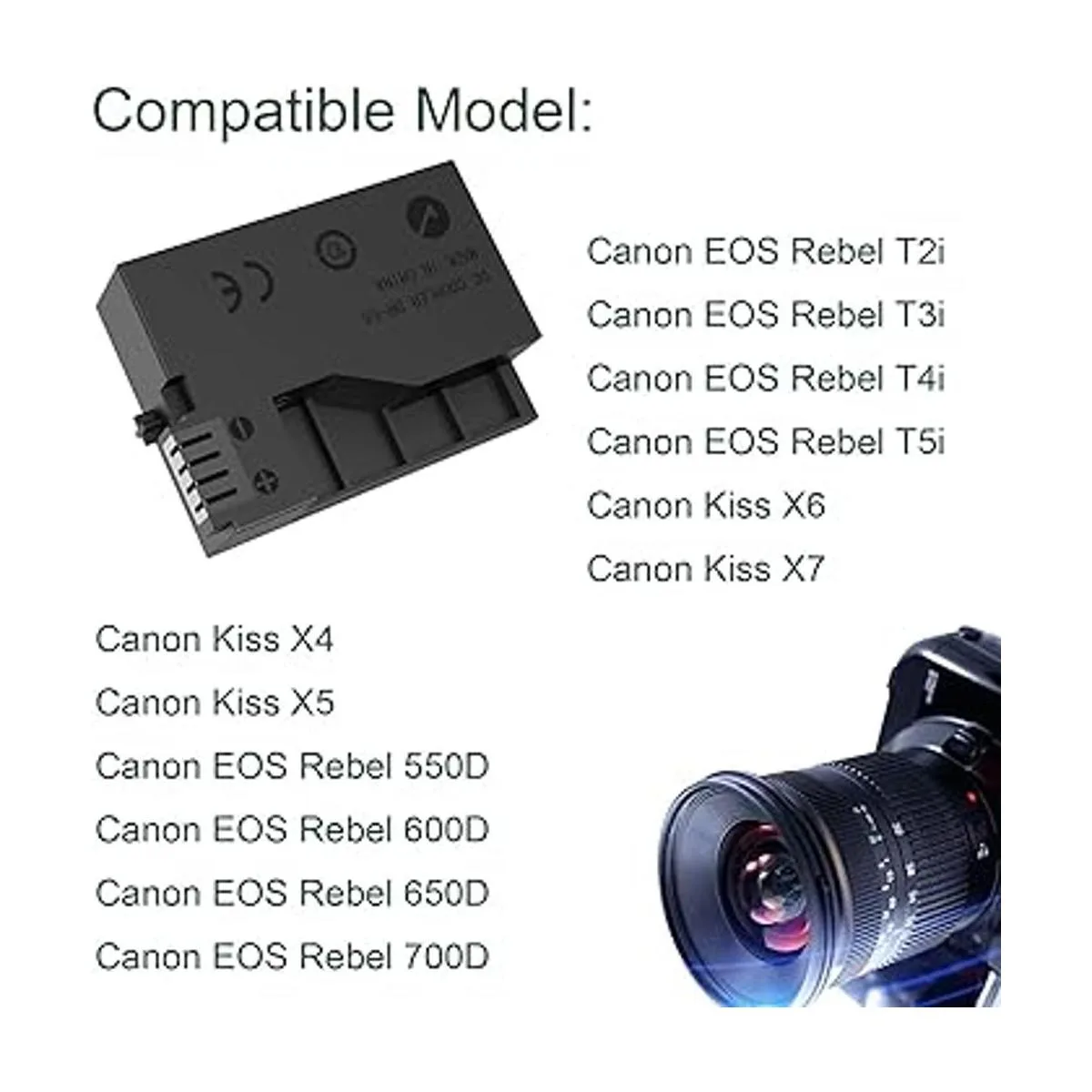 F1TP ACKE8 Adaptador de fuente de alimentación de CA DRE8 Kit de batería simulada Reemplaza batería LPE8 para cámaras Canon EOS Rebel T5i T4i T3i T2i 700D 650D 600D 550D