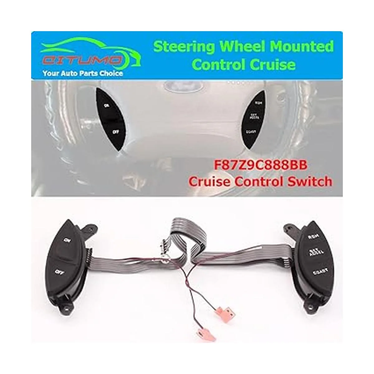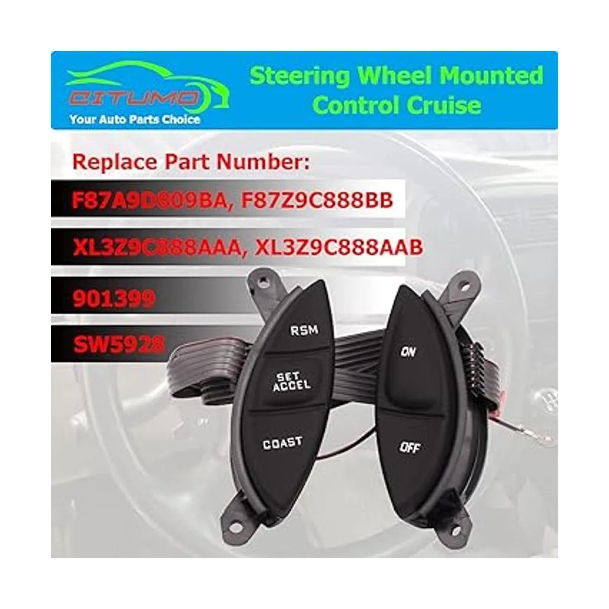 F87Z9C888BB Interruptor de control de crucero montado en el volante para Ford 19982003 Ranger 20012005 Explorer Sport Trac F150 Mercury Mountaineer Mazda B3000, 901399 F87A9D809BA
