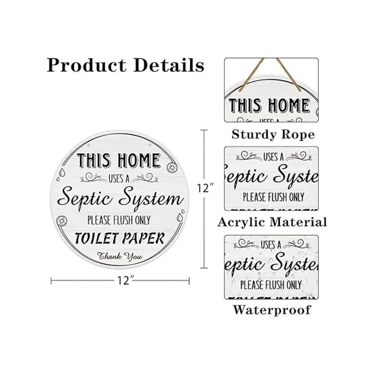FaCraft Letrero de baño con sistema séptico, letrero de tanque séptico de granja de 12 pulgadas para decoración de baño, letrero de placa de papel higiénico para decoración de pared del hogar