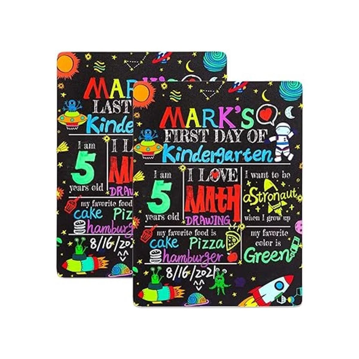 FaCraft Letrero para el primer y último día de escuela, 9 x 12 pulgadas, pizarra reutilizable para el regreso a clases, accesorio de fotos de doble cara para el primer día de escuela para niños y niñas