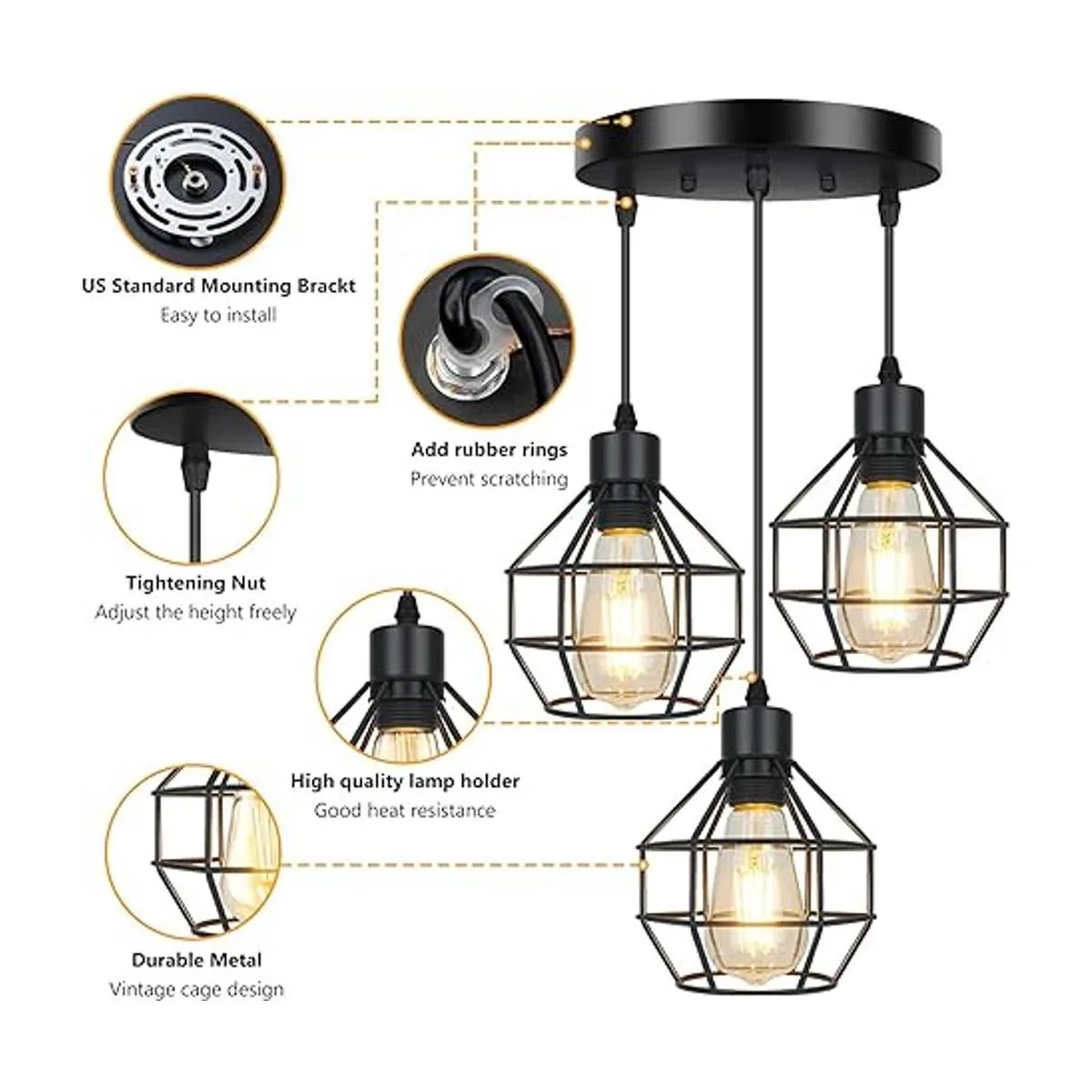 Servicio al cliente La lámpara colgante de jaula vintage ajustable está bien hecha con materiales de alta calidad, resistente y duradero, ofrece a tu familia su uso sin preocupaciones. Si tienes algún problema con nuestra lámpara colgante de techo para pasillo, no dudes en ponerte en contacto con nosotros, resolveremos tus problemas en 24 horas.