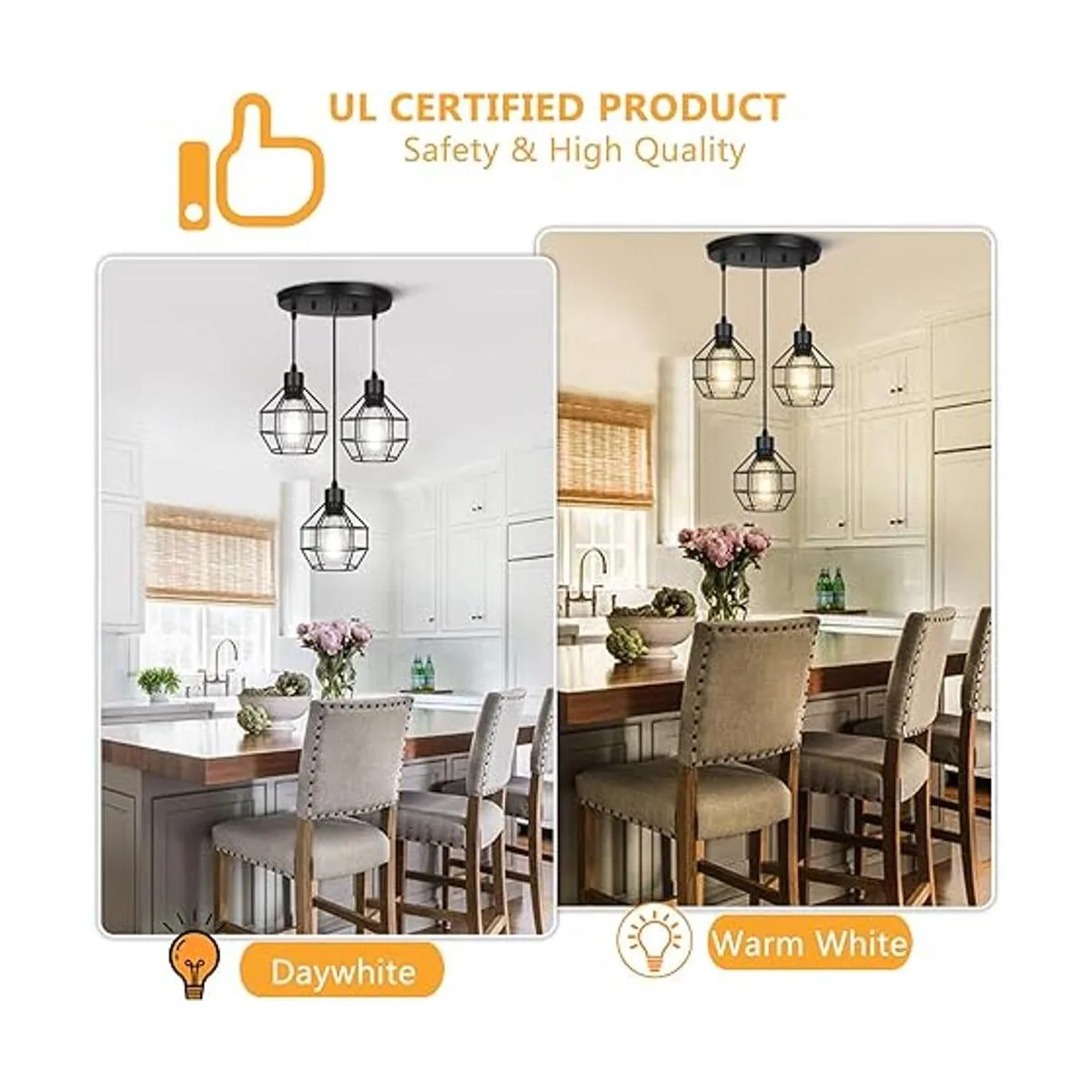 Requiere 3 bombillas de base E26: utiliza cualquier bombilla de base E26 no incluida, máximo 60 W para cada bombilla, como bombillas incandescentes, LED, CFL y halógenas. Nuestra iluminación colgante de cocina sobre isla se ve increíble con bombillas vintage, puedes elegir diferentes estilos de bombillas y temperaturas de color para crear el ambiente que desees. Esta lámpara de techo colgante también está diseñada para ser regulable cuando se utiliza con una bombilla regulable e interruptor de atenuación compatible.