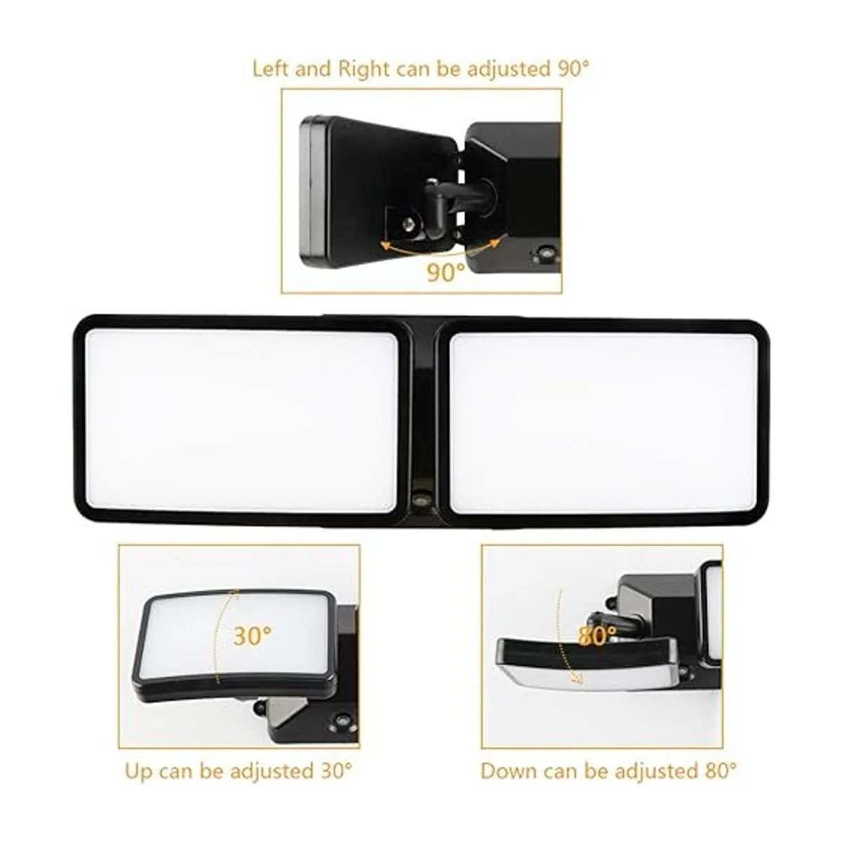 IP55 resistente a la intemperie El diseño impermeable hace que esta luz de seguridad funcione normalmente en tormentas de lluvia, aguanieve o nieve. Adecuado para iluminación al aire libre, para jardín, garaje, alero, porche.
