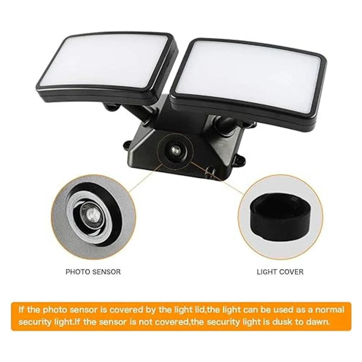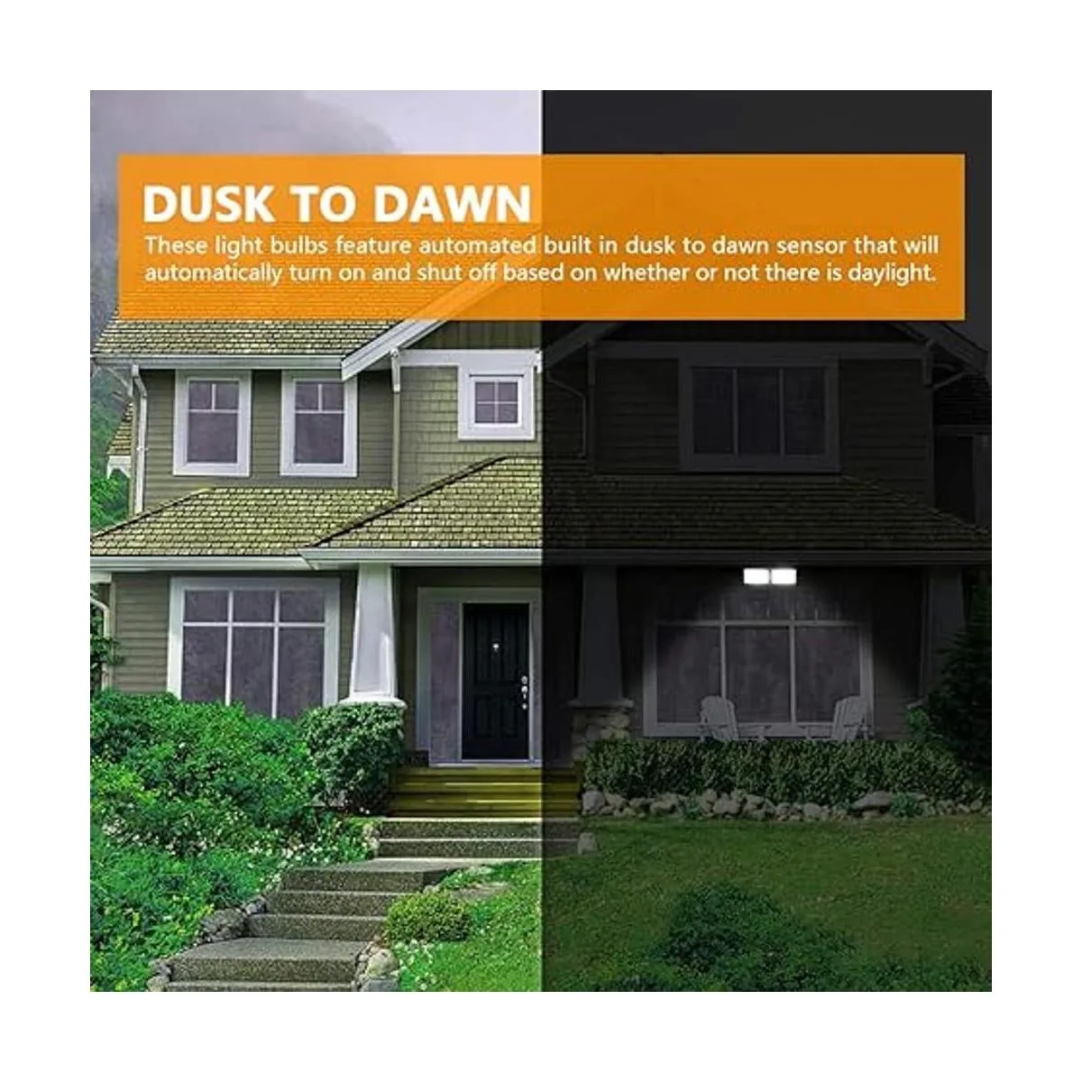 Sensor de luz integrado: nuestra luz LED de seguridad del atardecer al amanecer está equipada con un sensor de luz integrado, que detecta la intensidad de la luz externa con precisión. Se enciende automáticamente al anochecer y se apaga al amanecer. Para evitar parpadeo, no bloquees objetos ni tengas paredes delante de la lámpara
