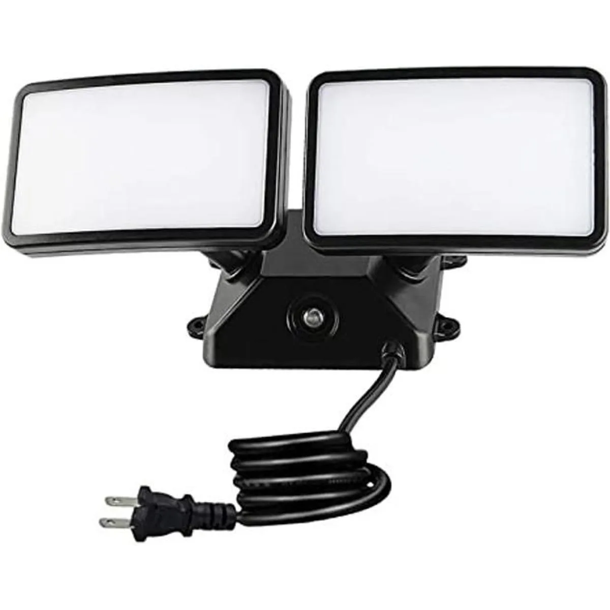 FAGUANGAO Luz de seguridad LED del atardecer al amanecer, luz de inundación enchufable de 18 W para exteriores, luz diurna de 5000 K, 1600 lm, impermeable IP55, luz de pared ajustable de 2 cabezales para garaje, porche, patio, color negro