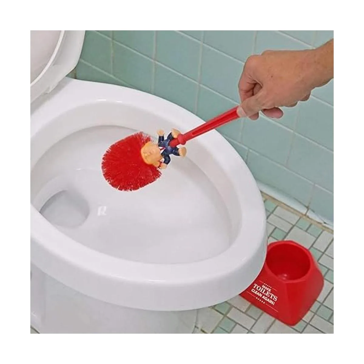 Un trato brillante Este divertido cepillo Trump con soporte es seguro que será un éxito en cualquier cuarto de baño. Un trato apropiado para el mismo Donald