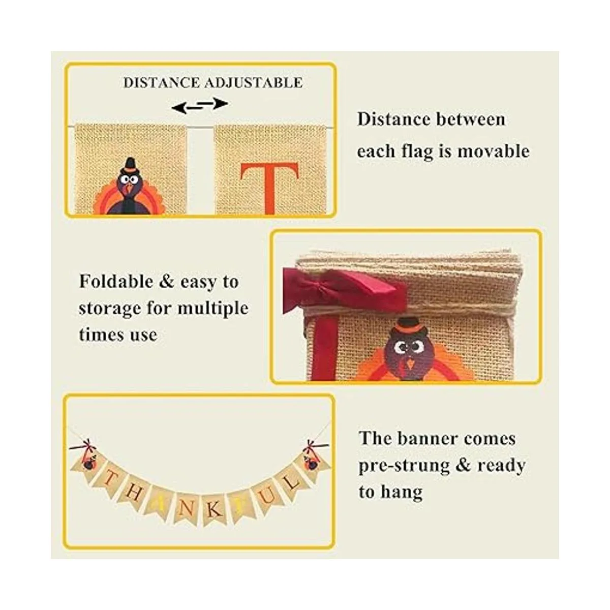 Fácil de usar: la pancarta de Acción de Gracias ha sido montada, no requiere bricolaje, simplemente cuélgalas en el lugar perfecto donde quieras, también se pliega fácilmente para almacenamiento.
