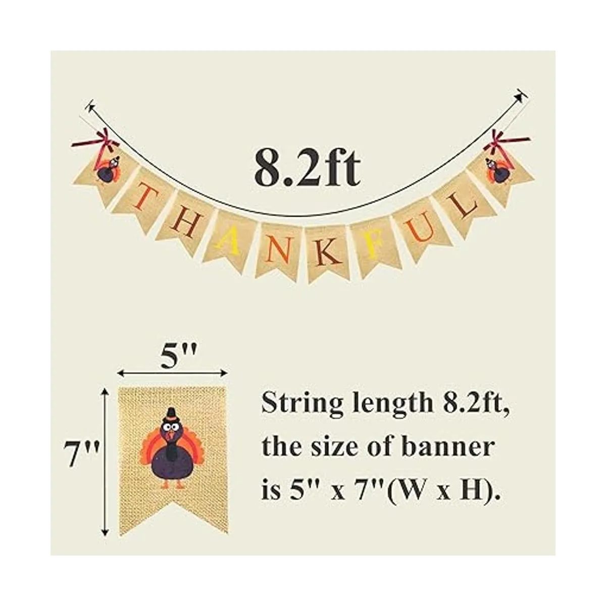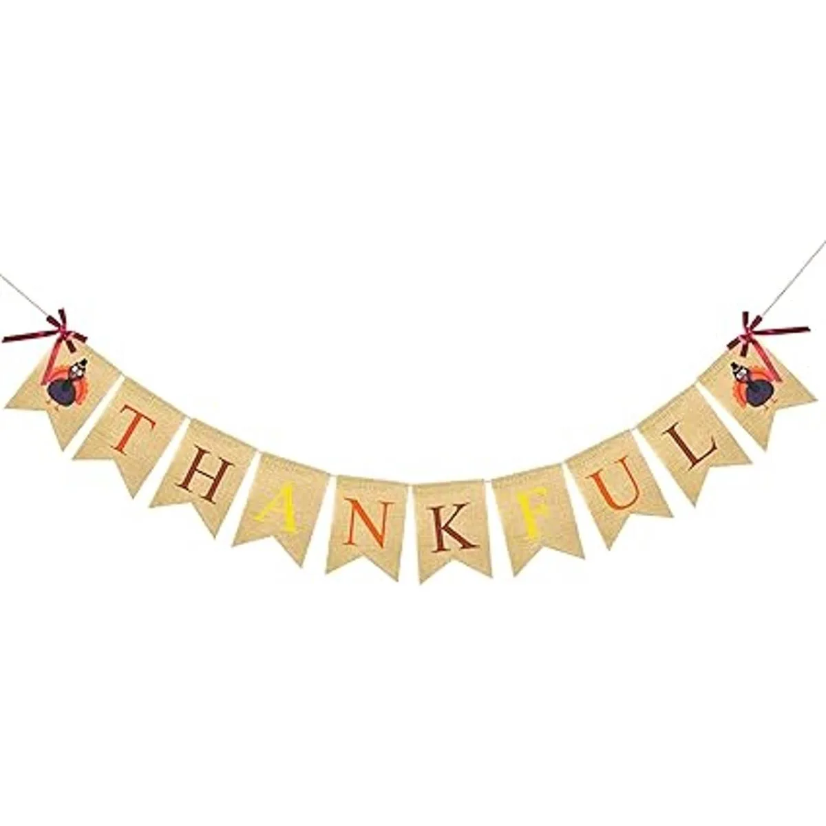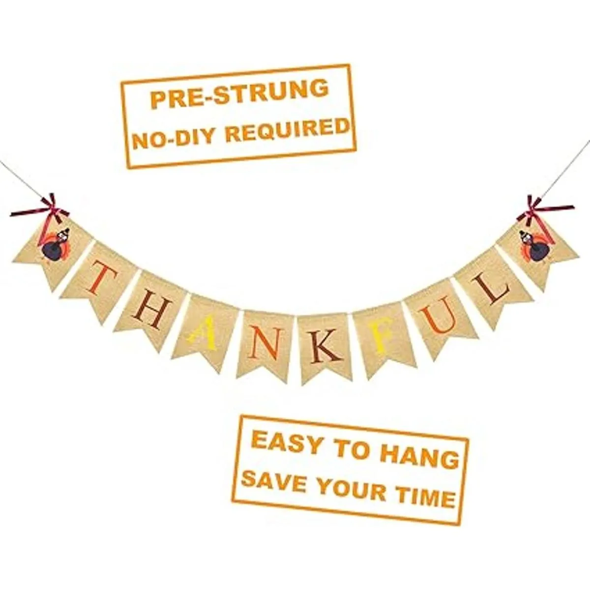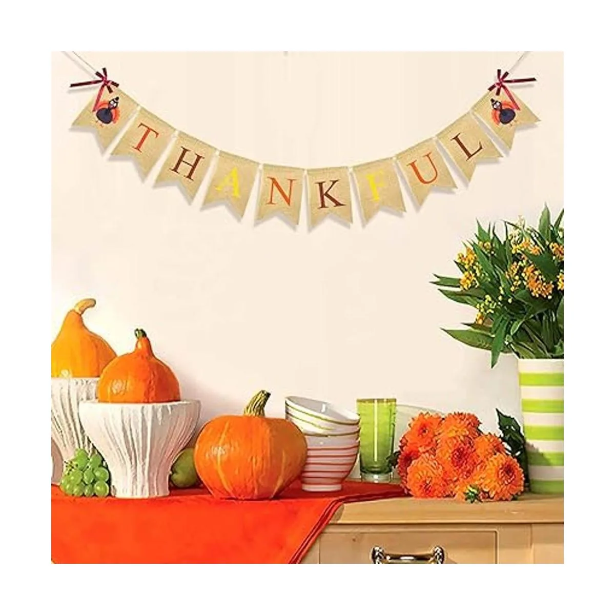 FAKTEEN Banner de arpillera agradecida con pavo vintage, decoraciones para el día de Acción de Gracias, guirnalda, cosecha de otoño, decoración del hogar, decoración de fiesta de amigos