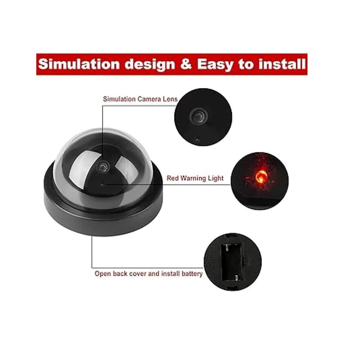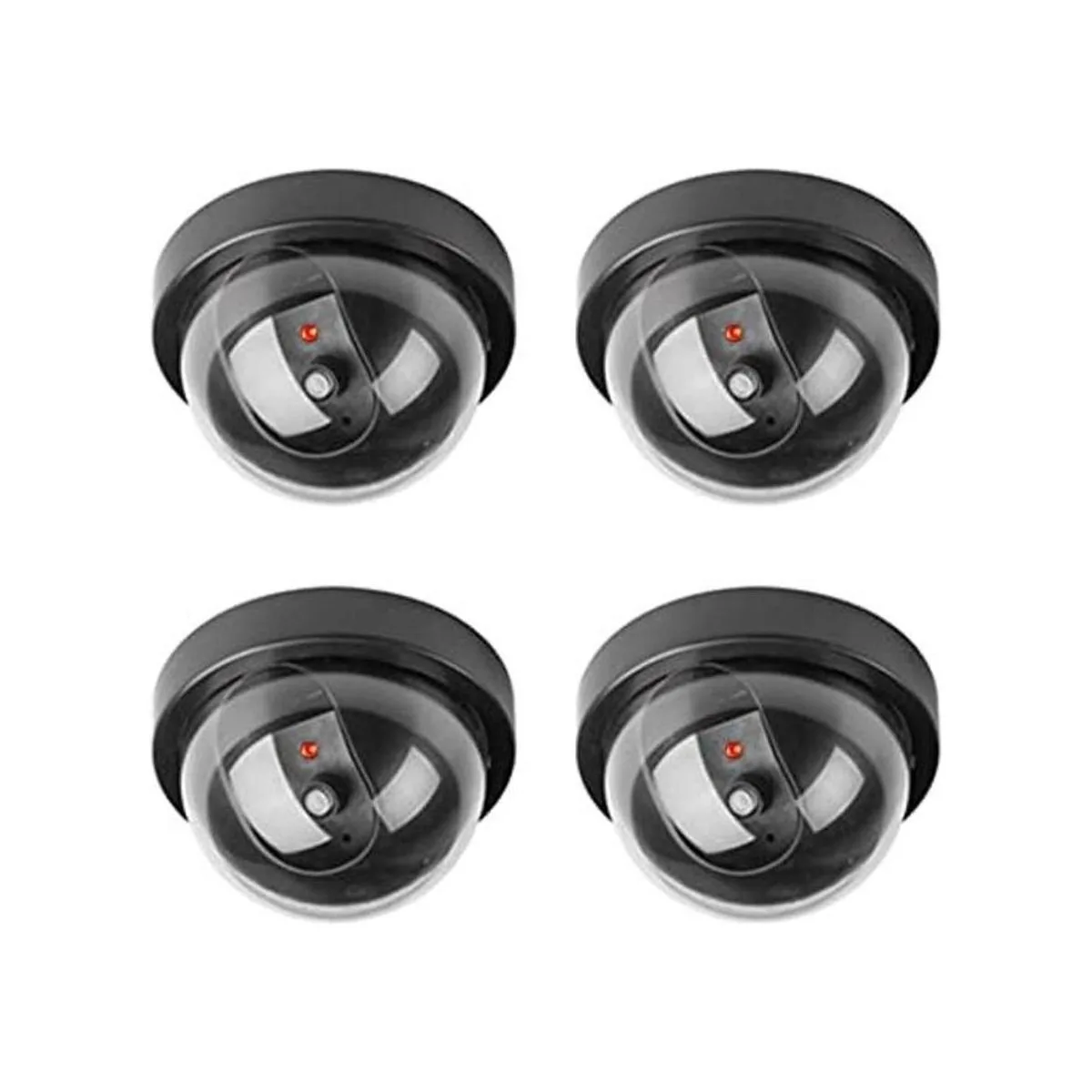 Falso cámara simulada de seguridad CCTV domo cámaras con luz LED roja intermitente para interiores y exteriores, negocios, 4 unidades, negro