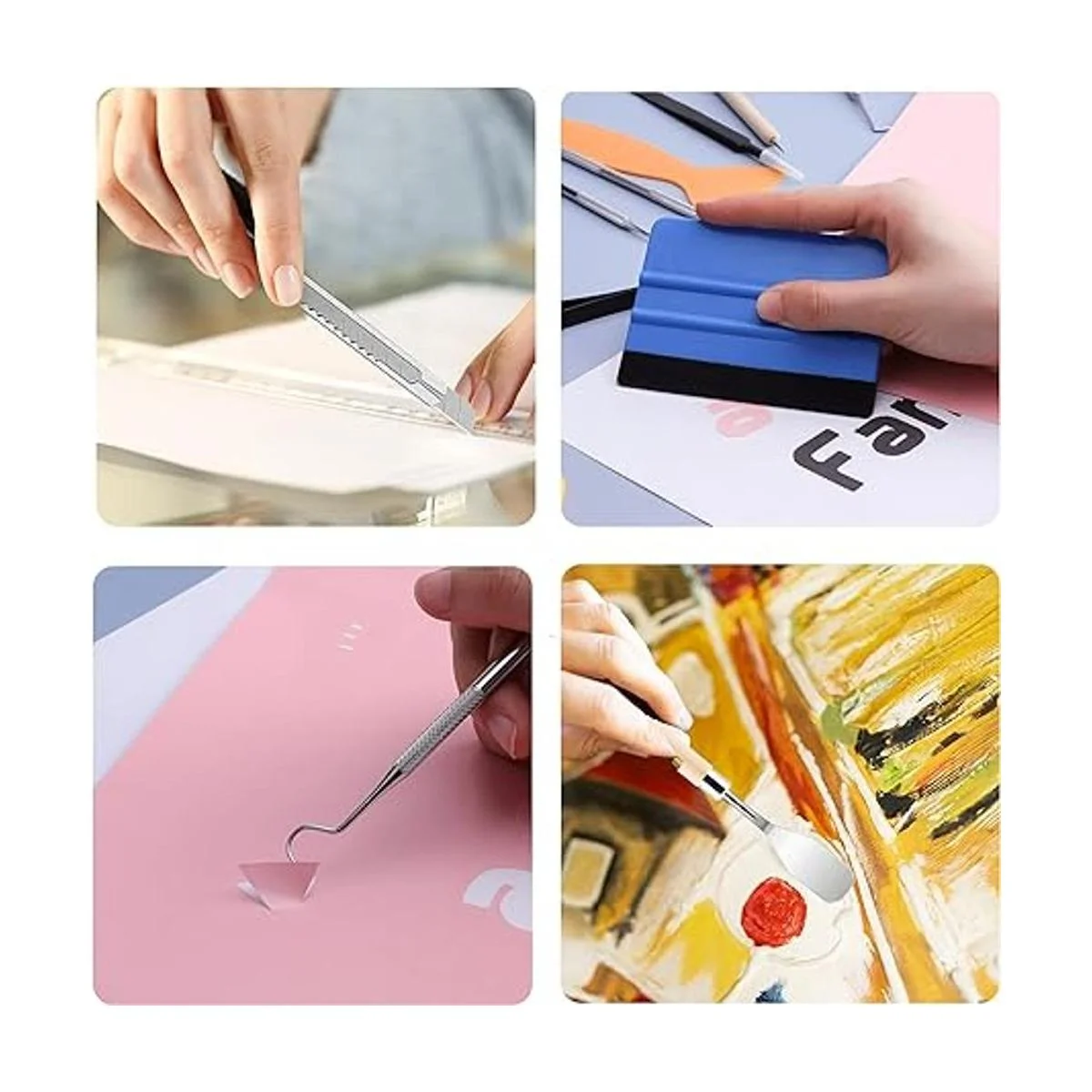 Herramientas de desmalezado de vinilo multiusos Las herramientas de desmalezado de vinilo se utilizan principalmente para pegar vinilo, calcomanías de vinilo, calcomanías de pared, manualidades de papel, costura, siluetas, camafeos, relieve, flores secas y otras manualidades, otros juegos de herramientas básicas también se pueden utilizar adornos, bordado, eliminación de residuos, eliminación de acné y picaduras de abejas, álbumes de recortes, tarjetas, tarjetas, letras, tallado de cera, relieve, tallado de frutas, diamantes de imitación, etc.