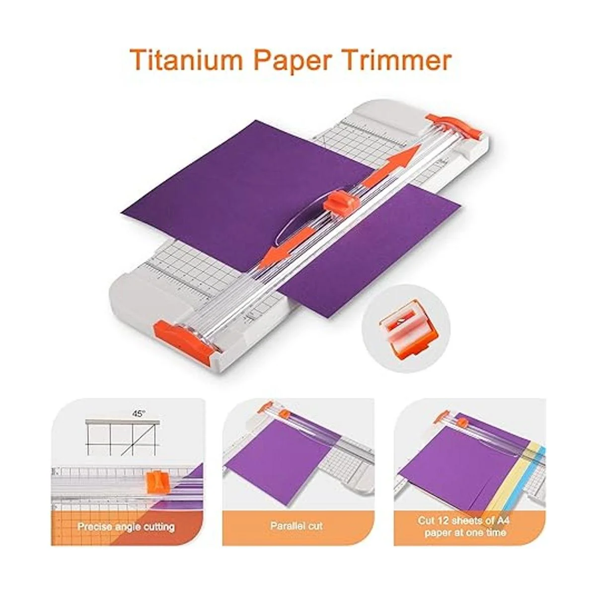 Cortadora de papel para manualidades: confía en cuchillas de aleación dura de alta calidad, se puede lograr un corte preciso. El cortador de papel de 12 pulgadas puede cortar de 7 a 12 hojas de papel a la vez, lo que es muy adecuado para su uso en la oficina o el hogar o proyectos de manualidades. El sistema de guía deslizante garantiza que la línea recta de corte sea estable, el diseño es seguro, protege tus dedos de tocar la hoja y se mantiene alejado de cualquier operación peligrosa.