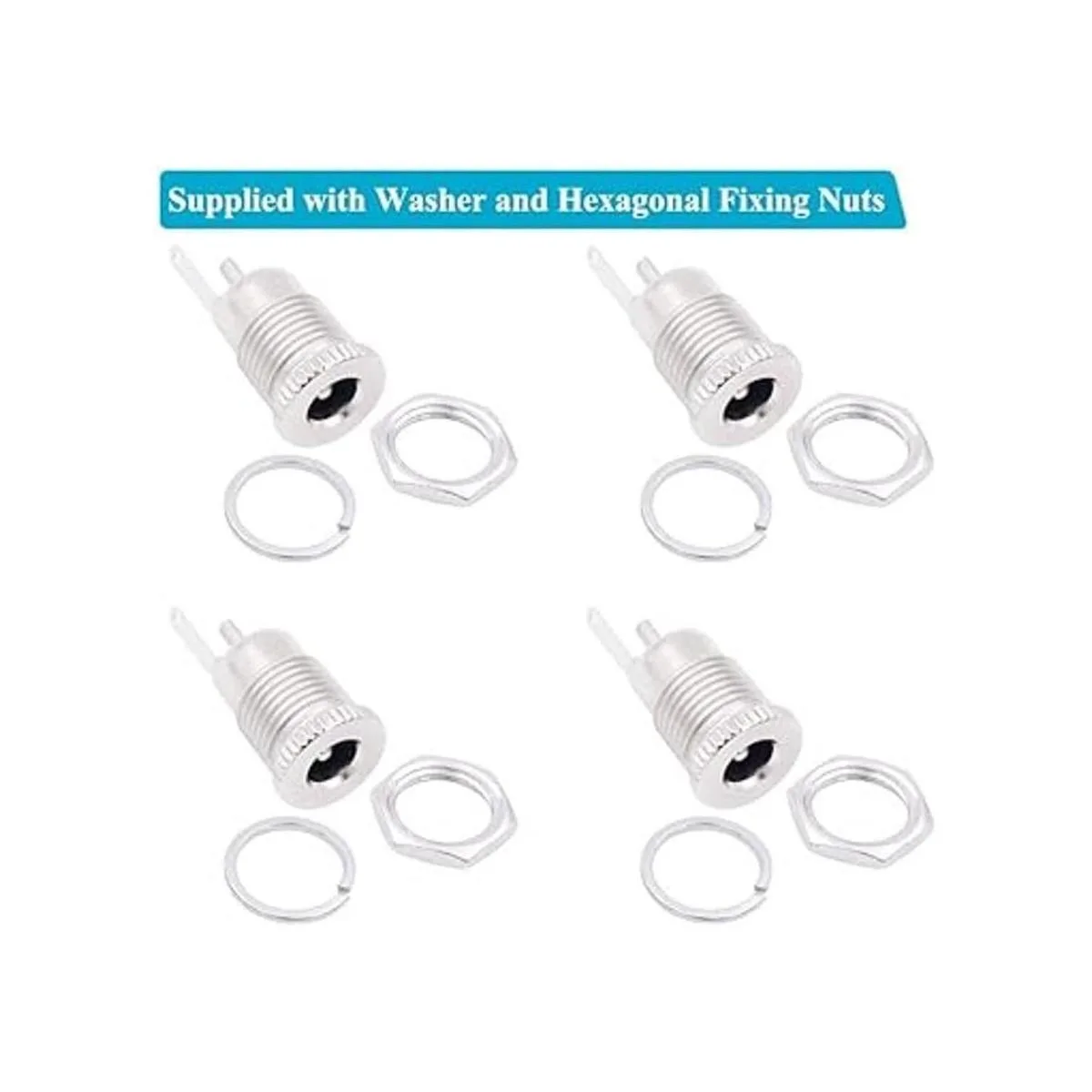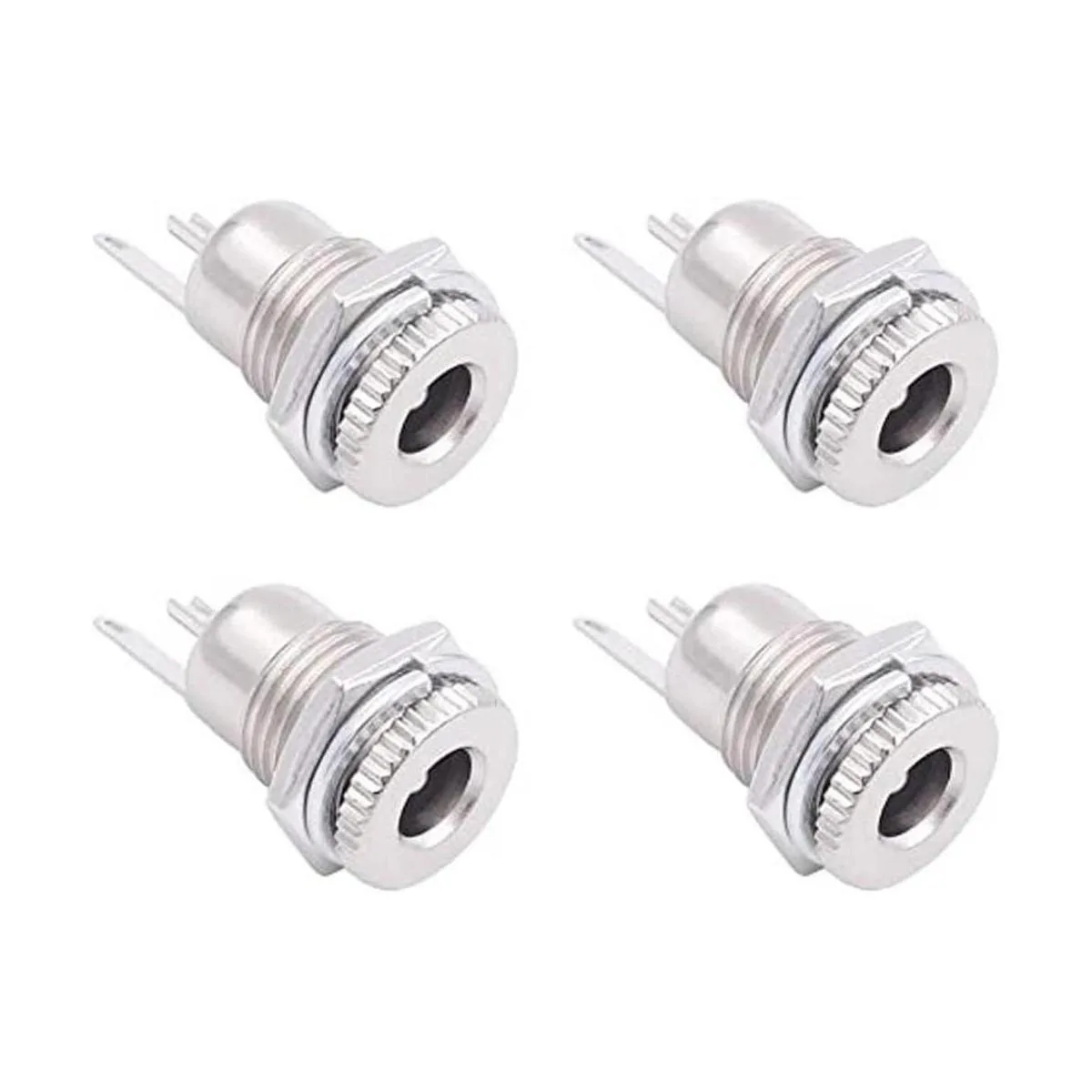 Contenido del paquete: 4 unidades de 0.217 x 0.083 in hembra DC Power Jack montaje en panel, tipo soldadura; suministrado con arandela y tuercas de fijación hexagonales.