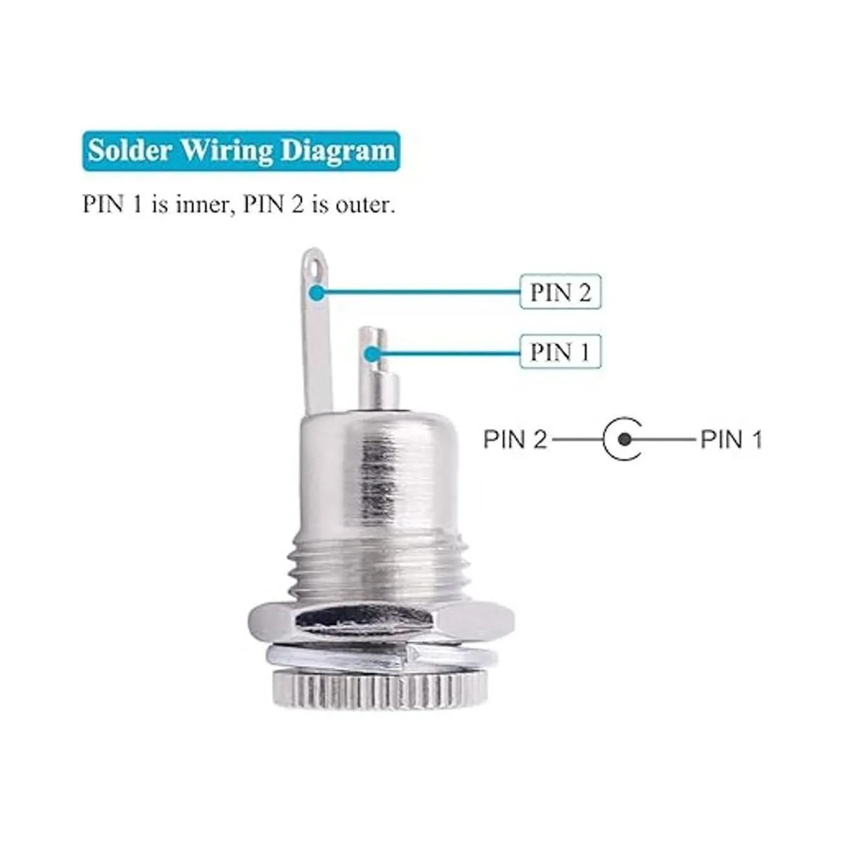 Diagrama de cableado: Pin 1 el pin más corto es interior; Pin 2 el pin más largo es exterior.