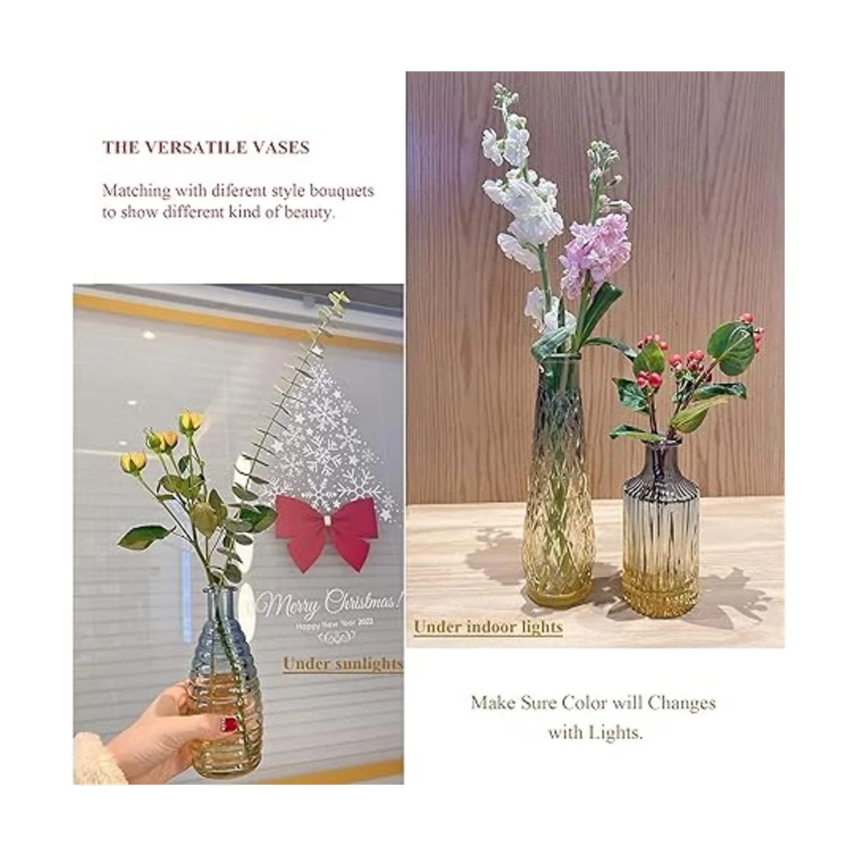 Tu elegante mobiliario para el hogar: la versatilidad de los jarrones de cristal pequeños retro a granel los hace adecuados para cualquier mesa, centro de mesa decorativo del hogar o decoración de boda. También se verán encantadores simplemente colocando una sola pieza o jarrones al azar 2/3 combinados, o aprecian jarrones vacíos por sí solos. Los estilos versátiles hacen la vida más fascinante.