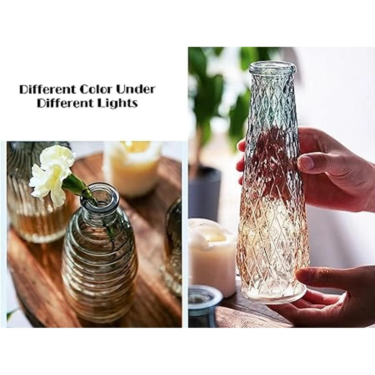 Jarrones decorativos pequeños de alivio vintage congelan momentos felices y cálidos. Estos adorables mini jarrones están hechos de vidrio prensado grueso y fuerte para dar un aspecto rústico, texturizado y encantador. 4 jarrones en un juego con diferentes tamaños, formas y patrones son perfectos para ser tu impresionante decoración de jarrón o soportes de flores, haciendo que el hogar esté lleno de la luz suave de la naturaleza.
