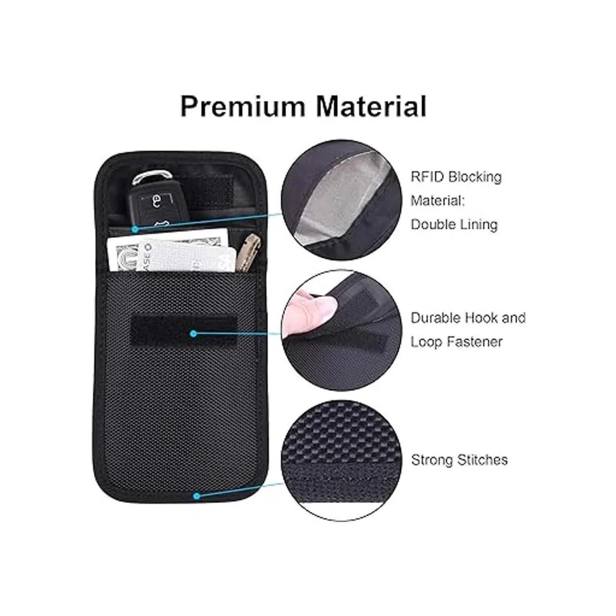 Faraday Bolsa para llavero, Wisdompro WP4694 RFID Protector de llavero RF para automóvil, protector de jaula Faraday, bolsa antirrobo, bloqueador de funda antipiratería, color negro
