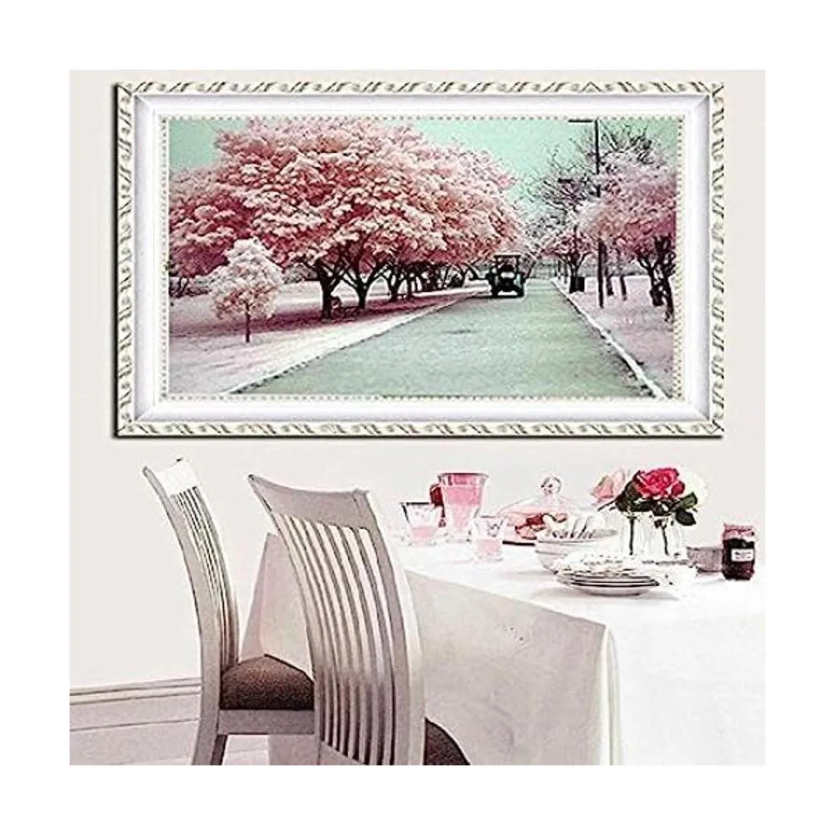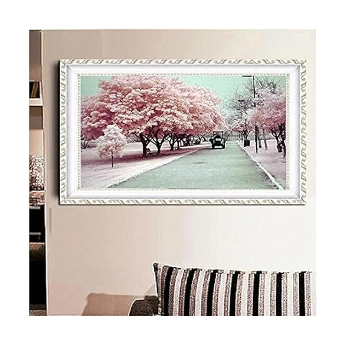 Faraway 5d diy Diamond pintura romántico Sakura Cherry Tree Street Scenic patrón completo de bordado de diamante redondo Rhinestone mosaico de pintura para decoración de pared 11.8 x 19.7 inch